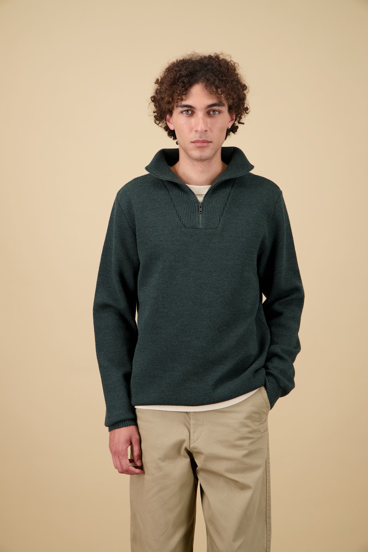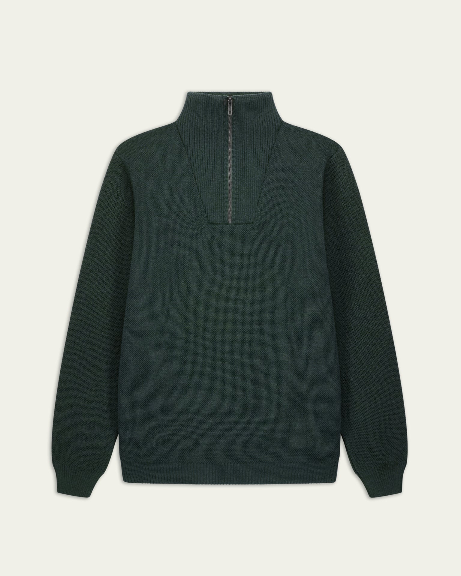 C’est le pull Youri avec un col camionneur. Un col qui monte le long de votre cou que vous allez ouvrir et fermer à l’aide d’un zip d’une qualité supérieure provenant d’un des principaux fabriquant du monde de fermetures éclairs (YKK – qualité excella). Ce zip a été fait et cousu sur la pièce dans le but de ne pas vous gêner, vous ne le sentirez pas. Un peu d’histoire : dans les années 1920, le pull camionneur était l’allié des chauffeurs routiers et des ouvriers. Pratique et fonctionnel, son col montant les protégeait du froid, tandis que le zip permettait d’ouvrir ou de refermer le col sans retirer le pull - idéal pour les changements de température entre les espaces intérieurs et extérieurs. Fil 100% laine mérinos extra-fine (19,5 microns) Tricotage maille piquée, bien serrée (jauge 14) Poignets et bas de pièces tricotés en côtes 2 x 2 Toucher doux et confortable Poids : 850 grammes