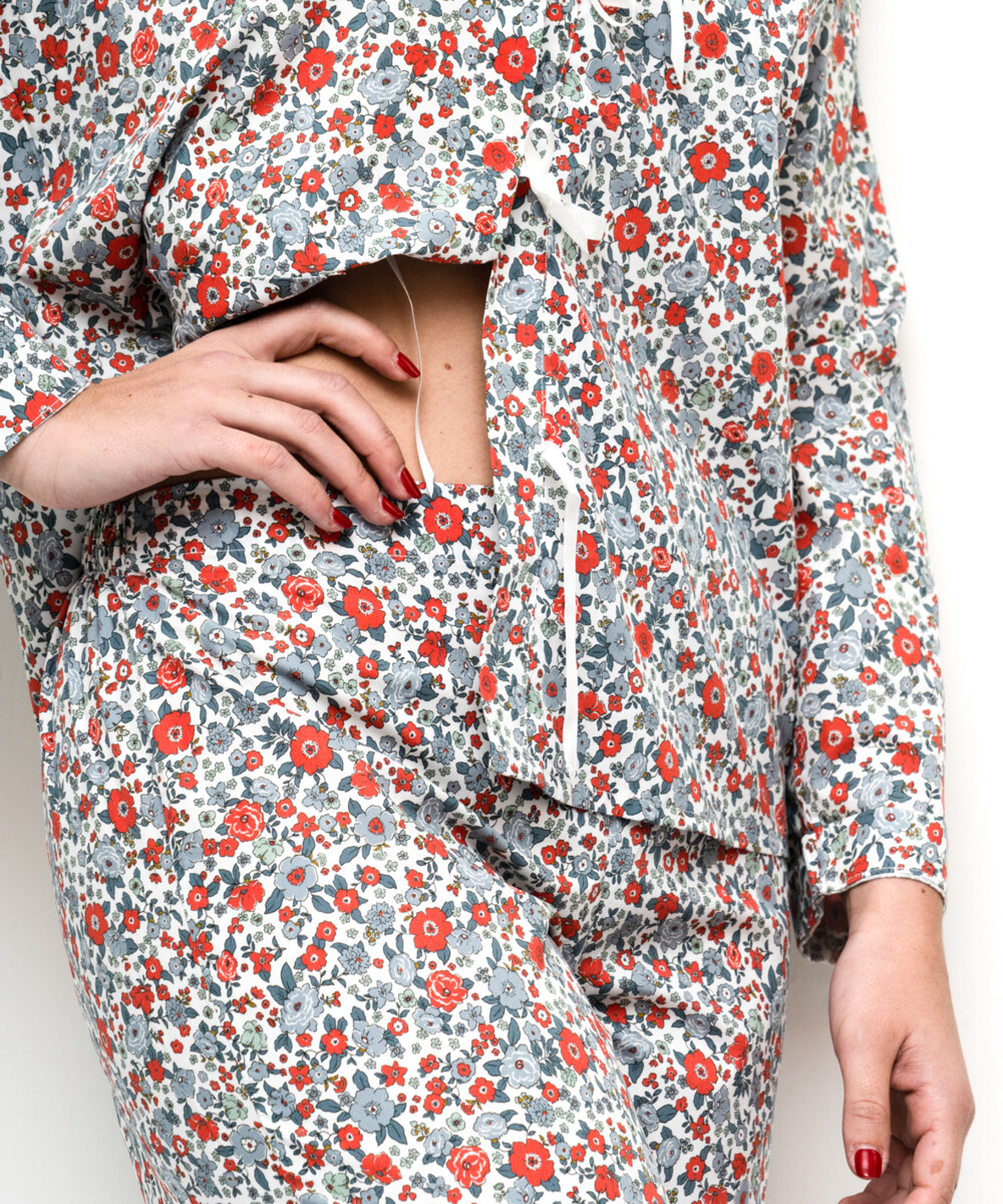 Pyjama femme en 100% coton fait en France. - Rouge/Bleu/vert clair/Gris