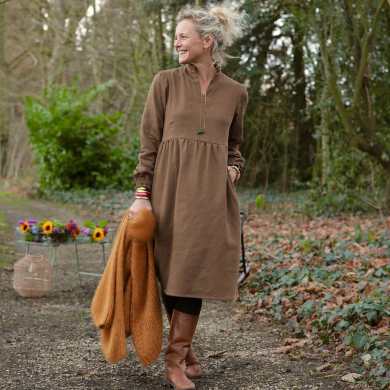 Robe Allegra - Tissage mixte gaze & sergé de coton moka