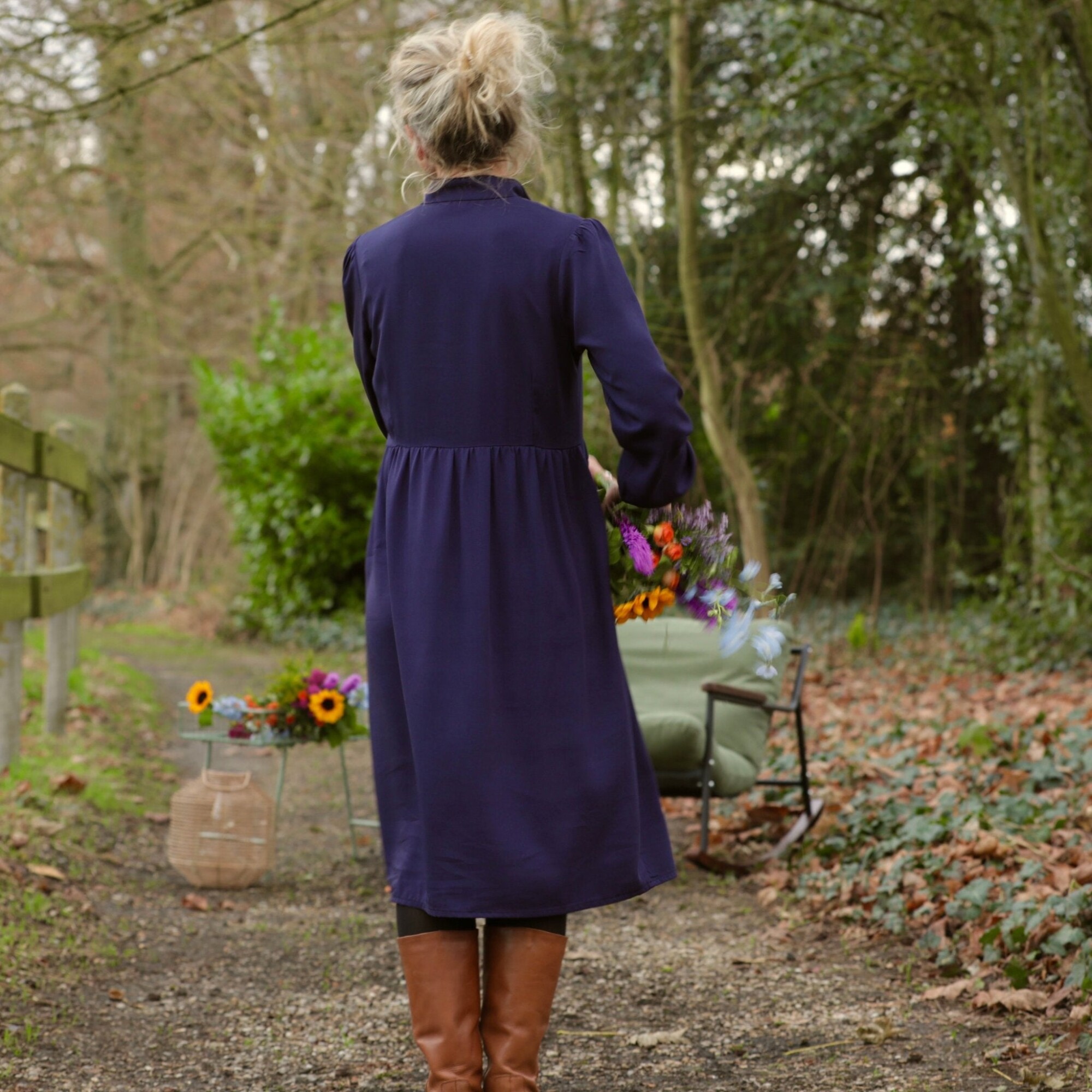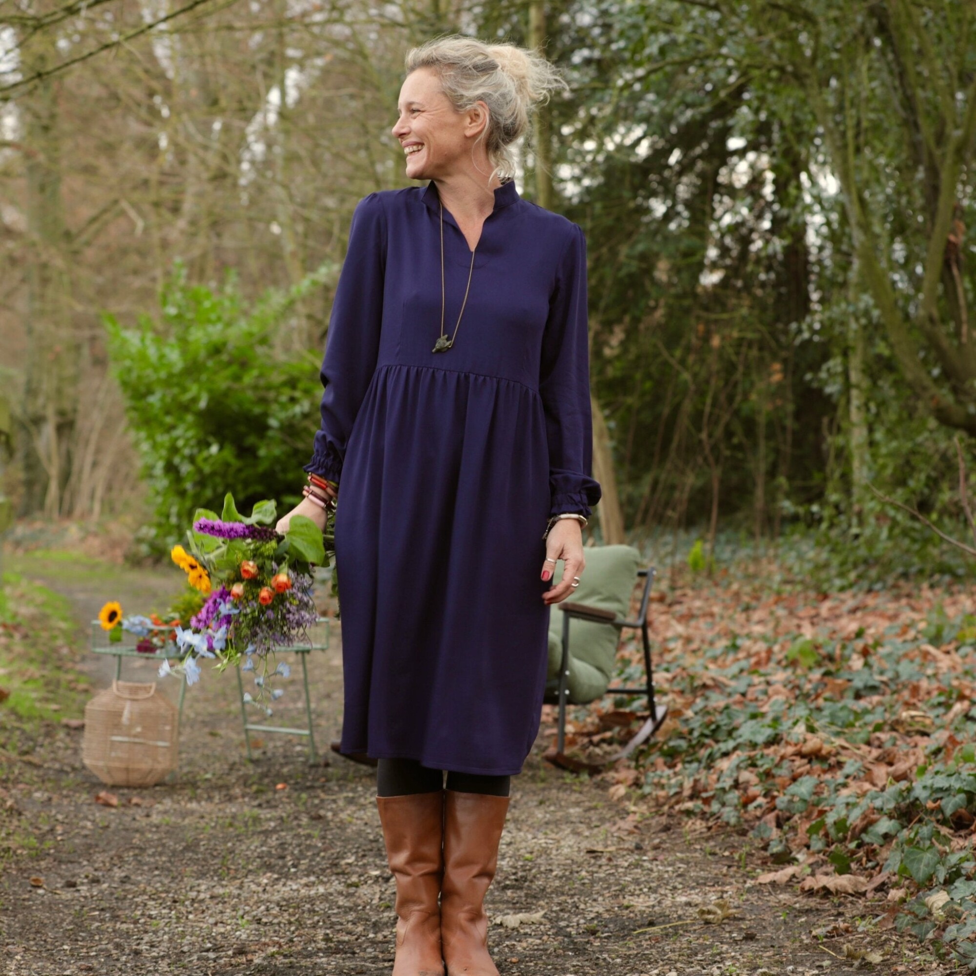 Coupe La robe Allegra présente une coupe fluide et légèrement évasée sous la poitrine, conçue pour sublimer naturellement la silhouette. Son col officier prolongé d’un V discret apporte une élégance subtile, tandis que sa ligne épurée et féminine offre confort et allure au quotidien.