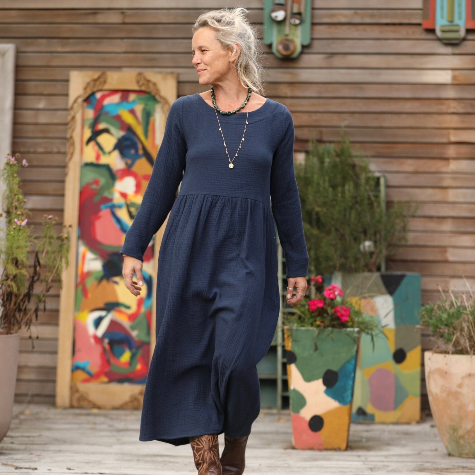 Robe Anaëlle - Double gaze de coton marine
