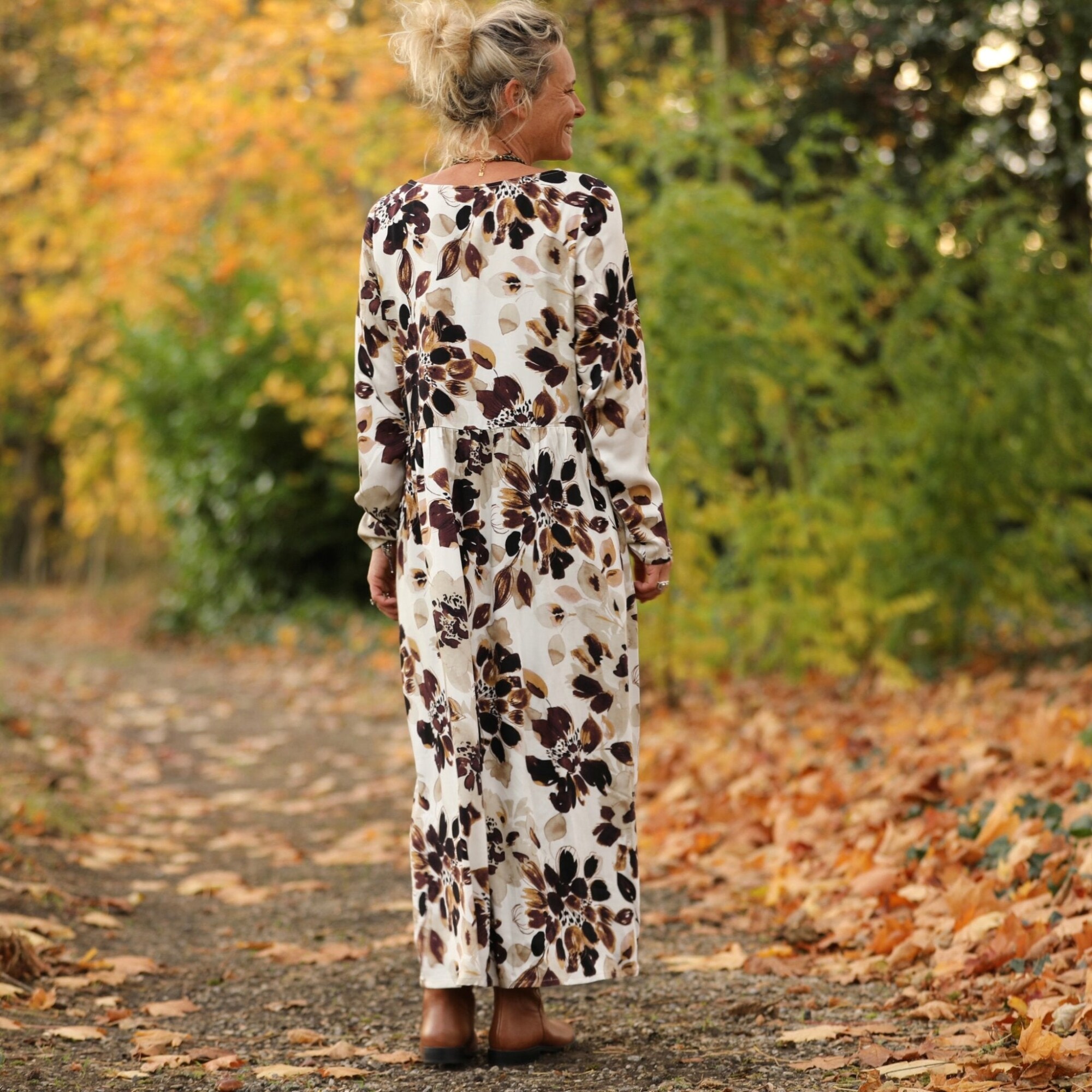 Robe Anaëlle - Viscose fleuri moka