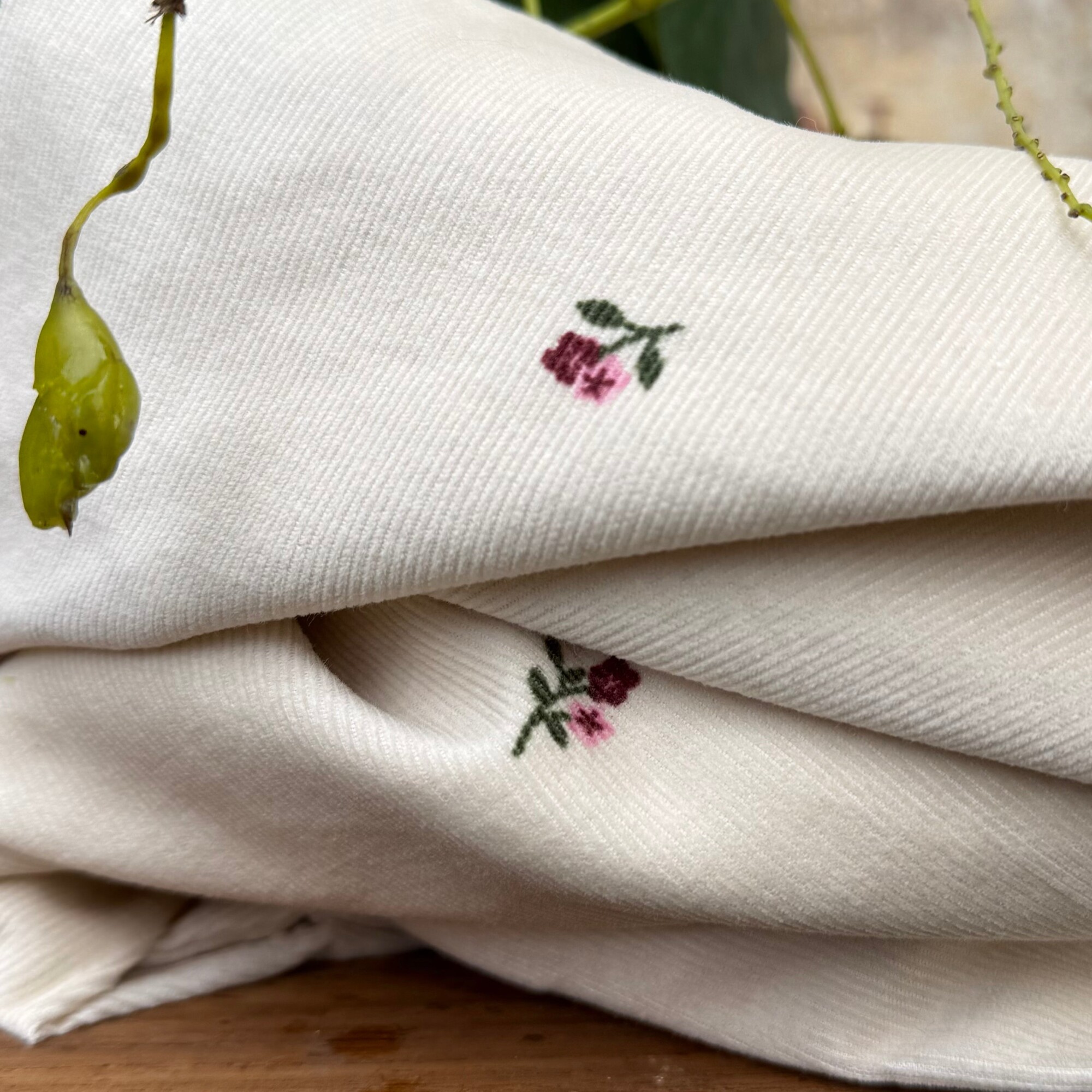 Robe Armande – Velours milleraies ivoire fleuri