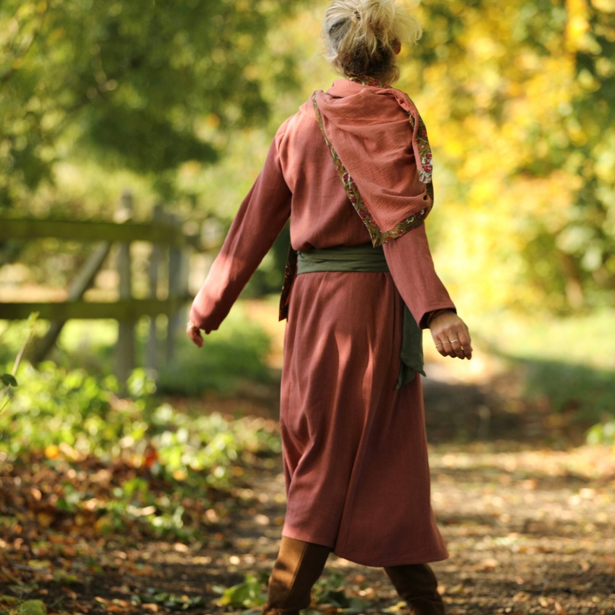 La robe Armande séduit par sa coupe trapèze fluide et son allure intemporelle. Son col rond souligne joliment le port de tête, tandis que sa ligne souple et légère offre un tombé naturel et élégant.