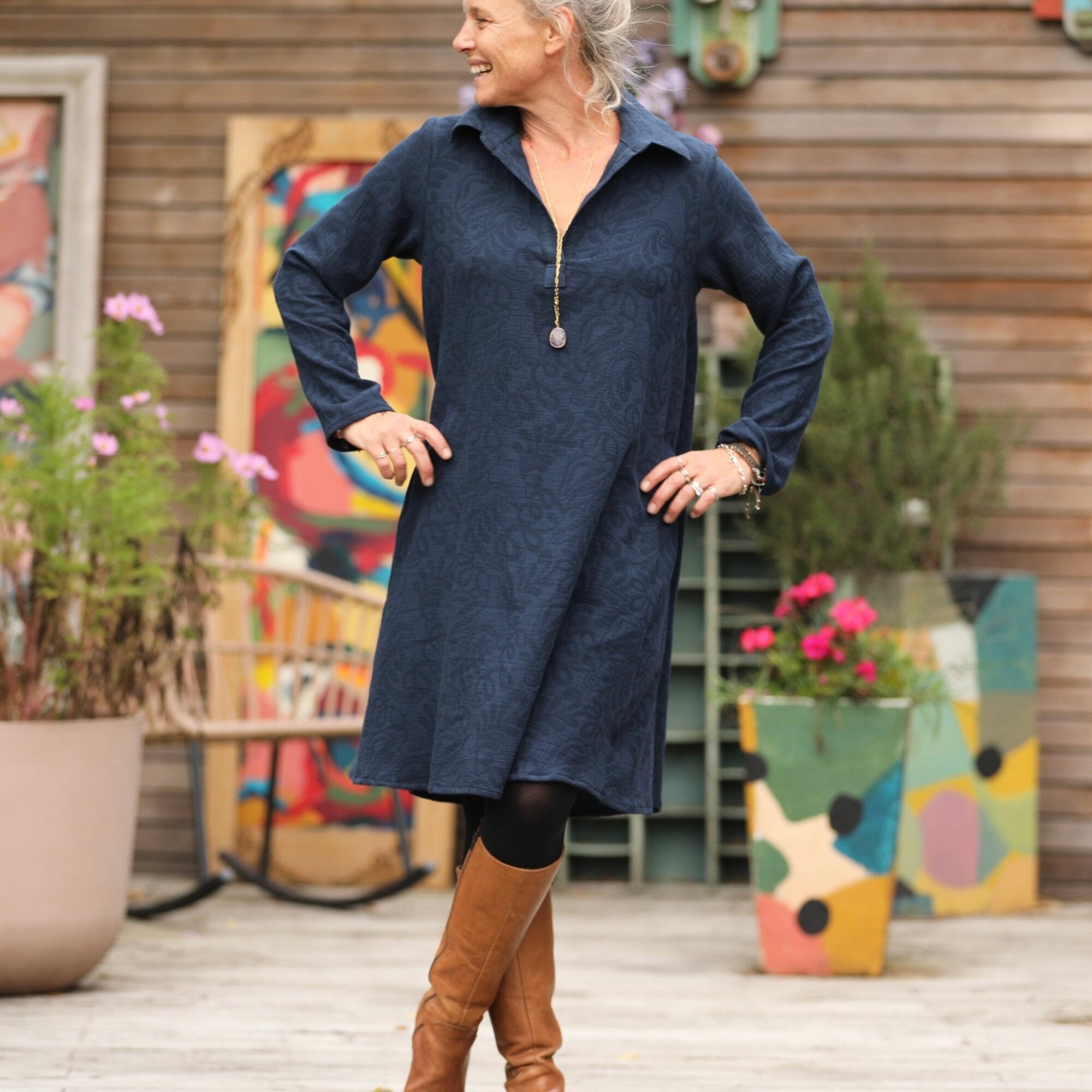Robe Carole - Jacquard de coton lin bleu marine
