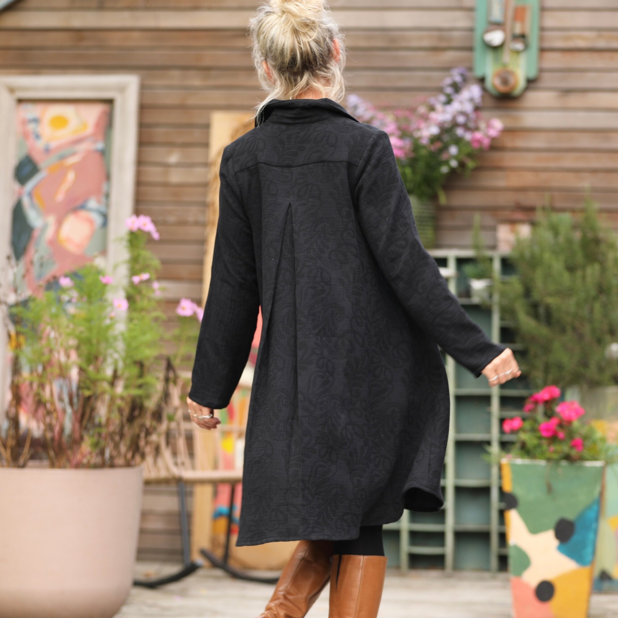 La coupe de la robe Carole La robe Carole séduit par sa coupe courte et très évasée, offrant une ampleur généreuse et un tombé fluide. Un pli généreux dans le dos met en valeur la silhouette et lui confère une élégance aérienne.