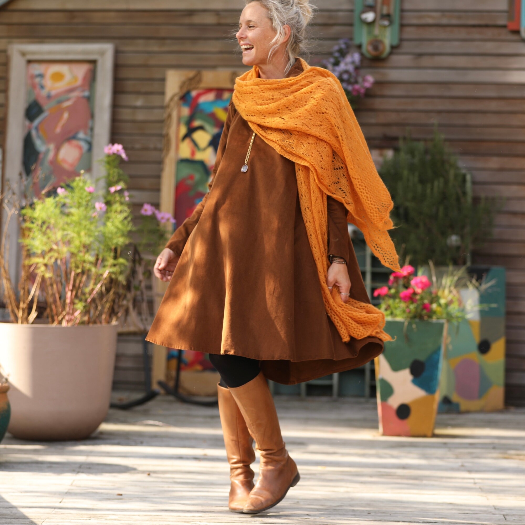 Robe Carole – Velours milleraies Écureuil