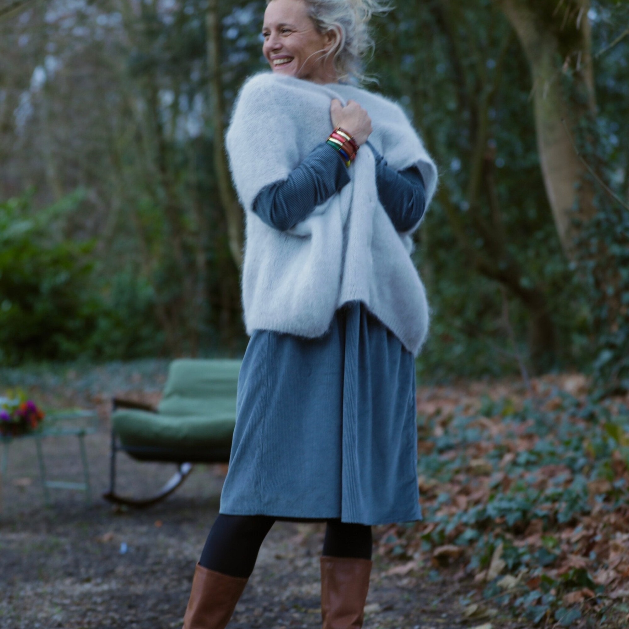 Robe Edonie coupe midi - Velours côtelé bleu grisé
