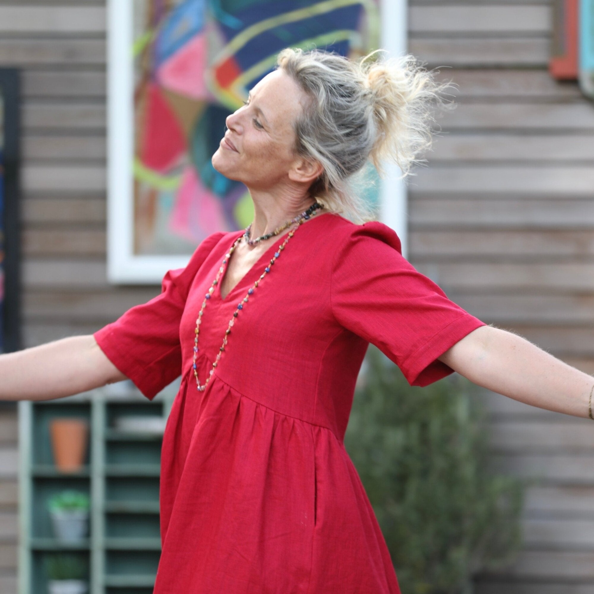 La robe Édonie est une élégante robe de style empire, caractérisée par une taille haute située juste sous la poitrine, mettant en valeur le buste. Son décolleté en V apporte une touche féminine et raffinée.