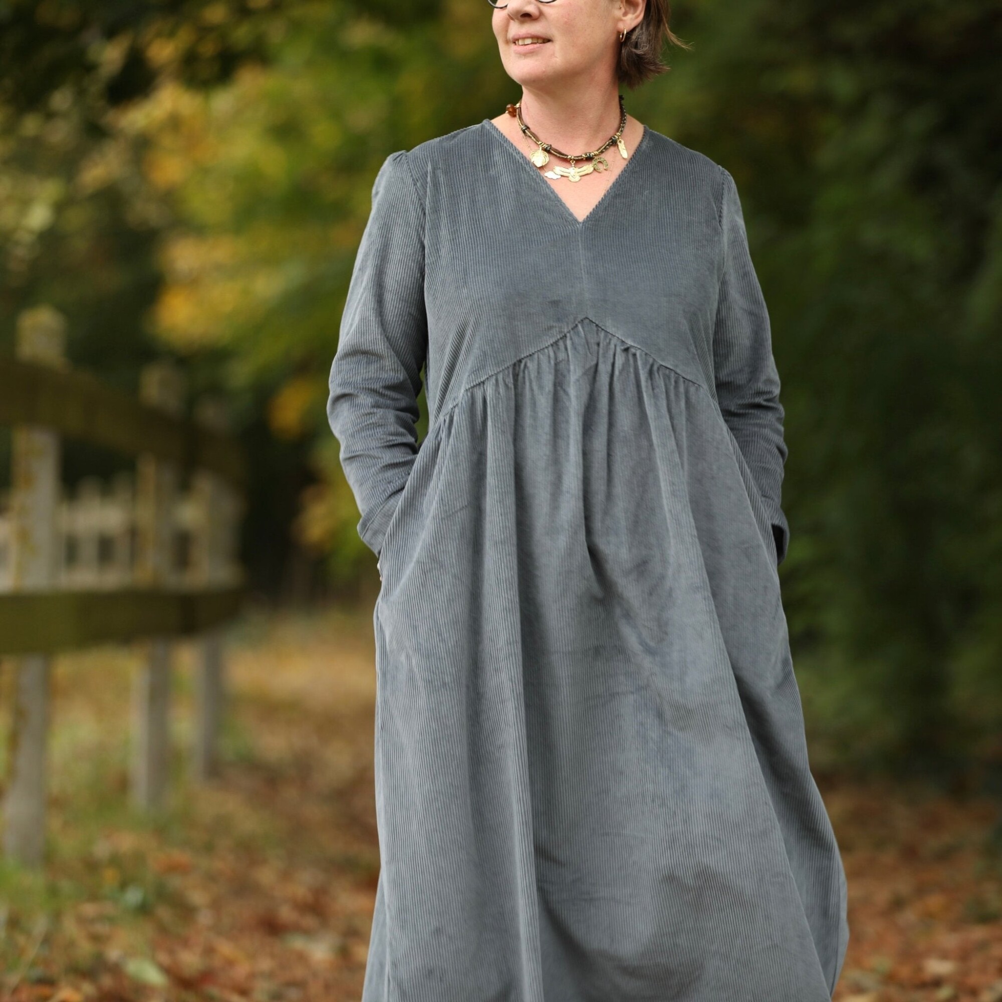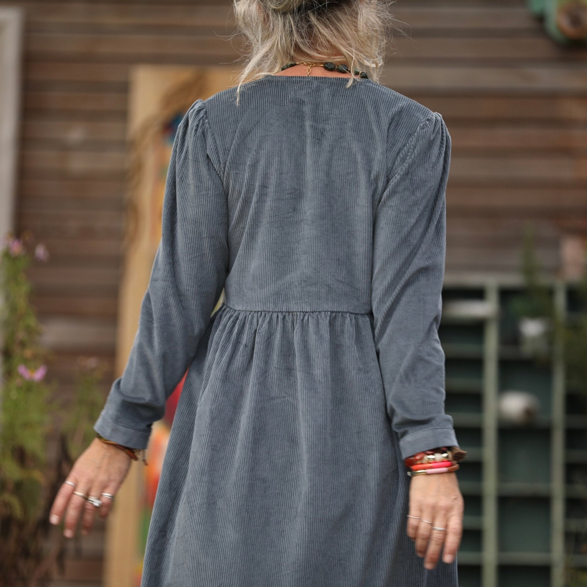 Robe Edonie manches longues - Velours côtelé bleu grisé