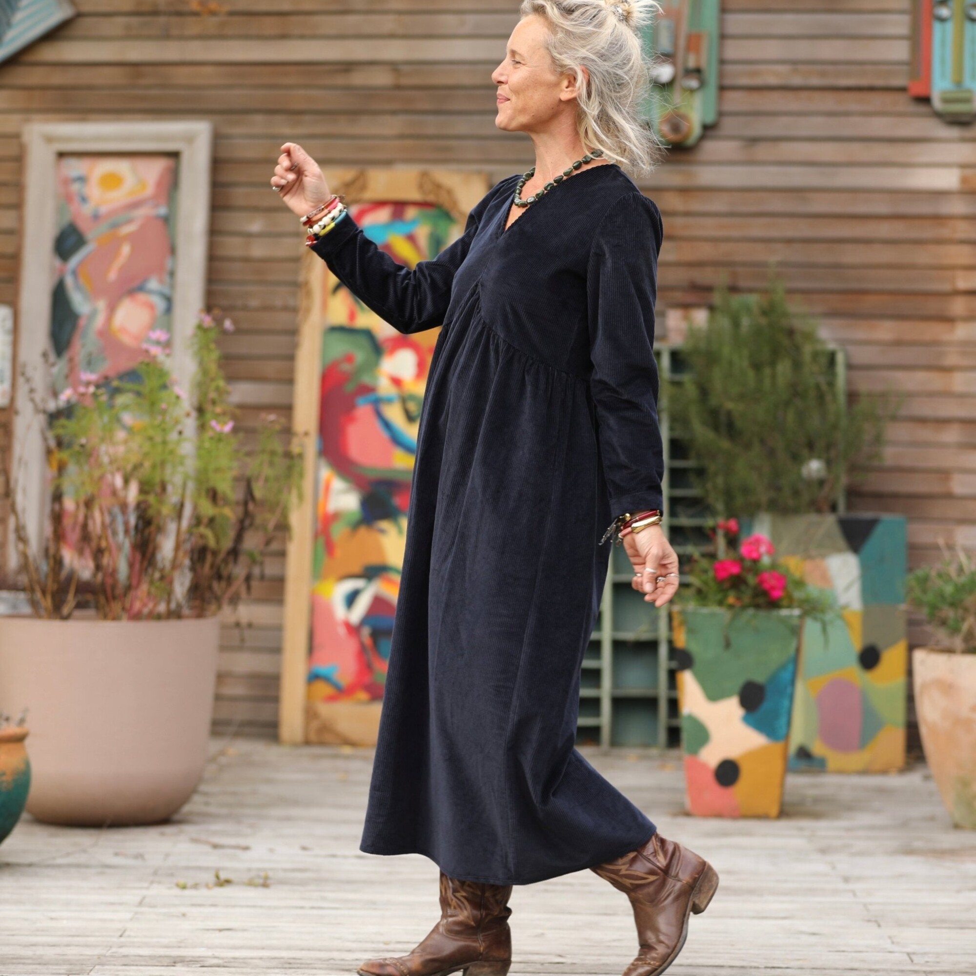 Robe Edonie manches longues - Velours côtelé marine