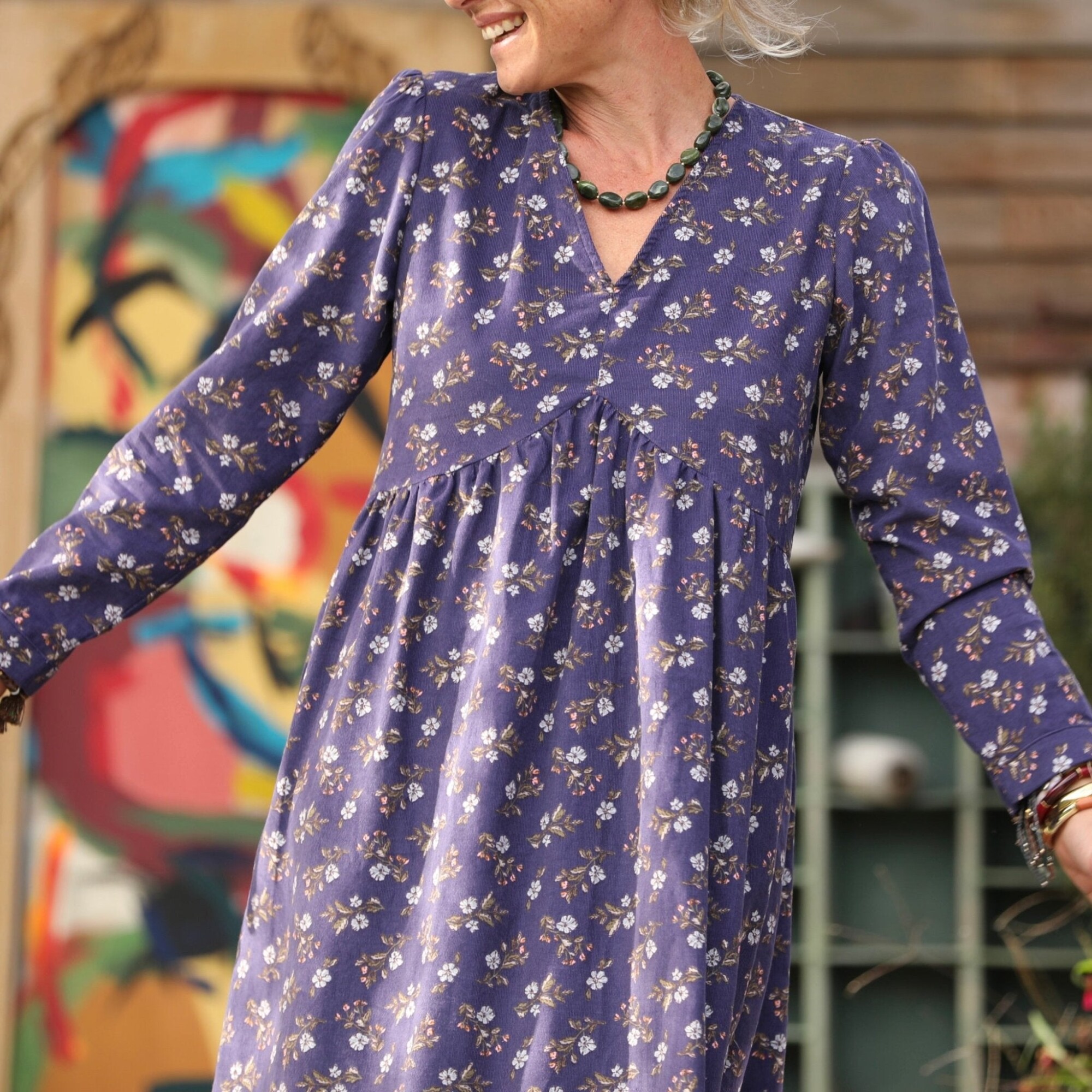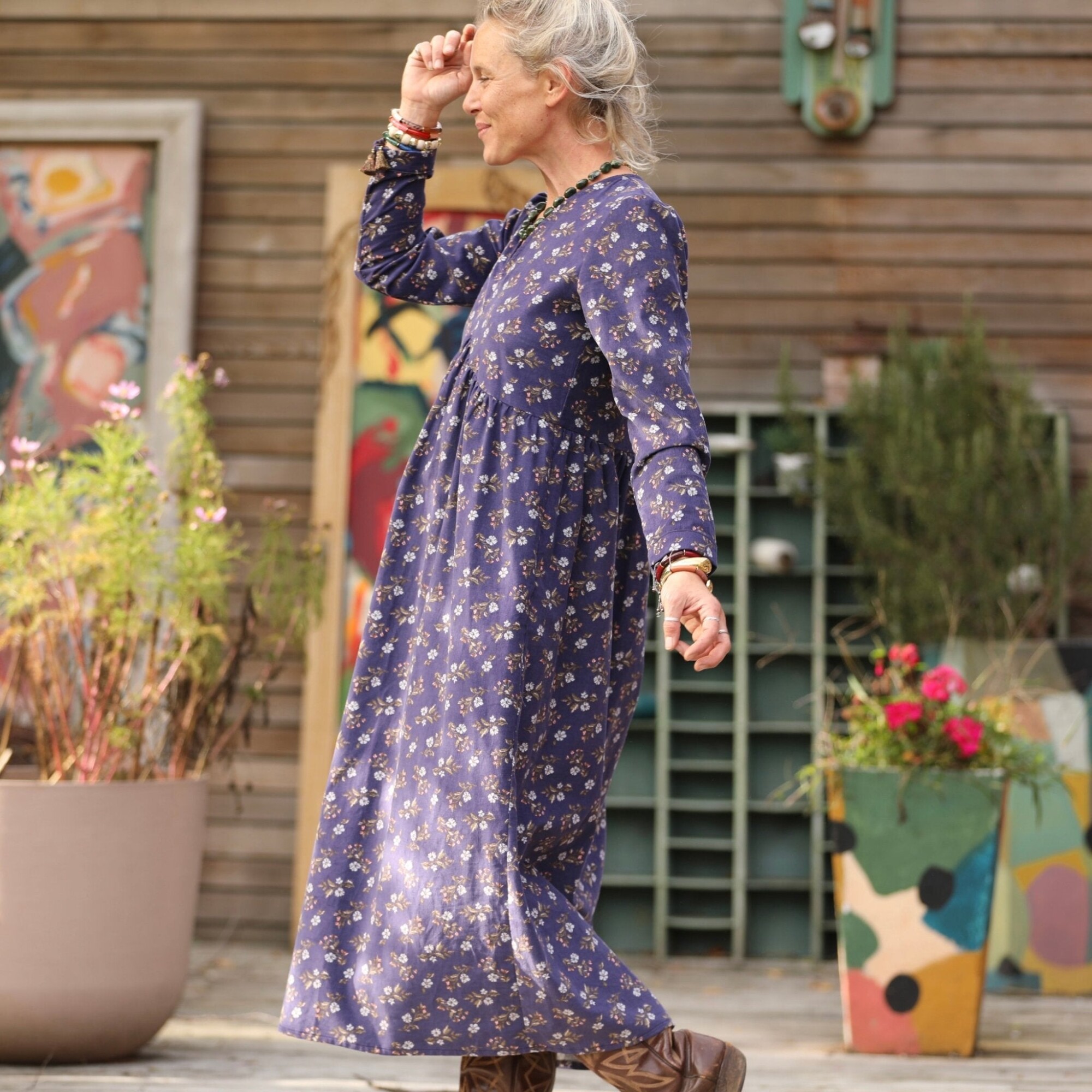 Robe Edonie manches longues - Velours milleraies Éclats de myosotis