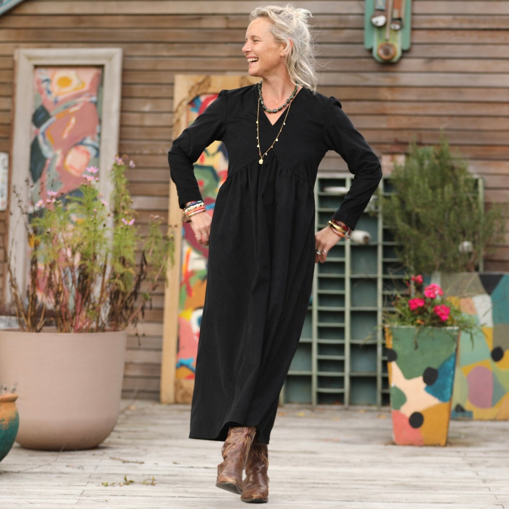 La robe Édonie incarne l’élégance intemporelle à travers sa coupe empire fluide et féminine. Son col V met en valeur le port de tête avec raffinement, tandis que la jupe ample assure un tombé souple et équilibré.