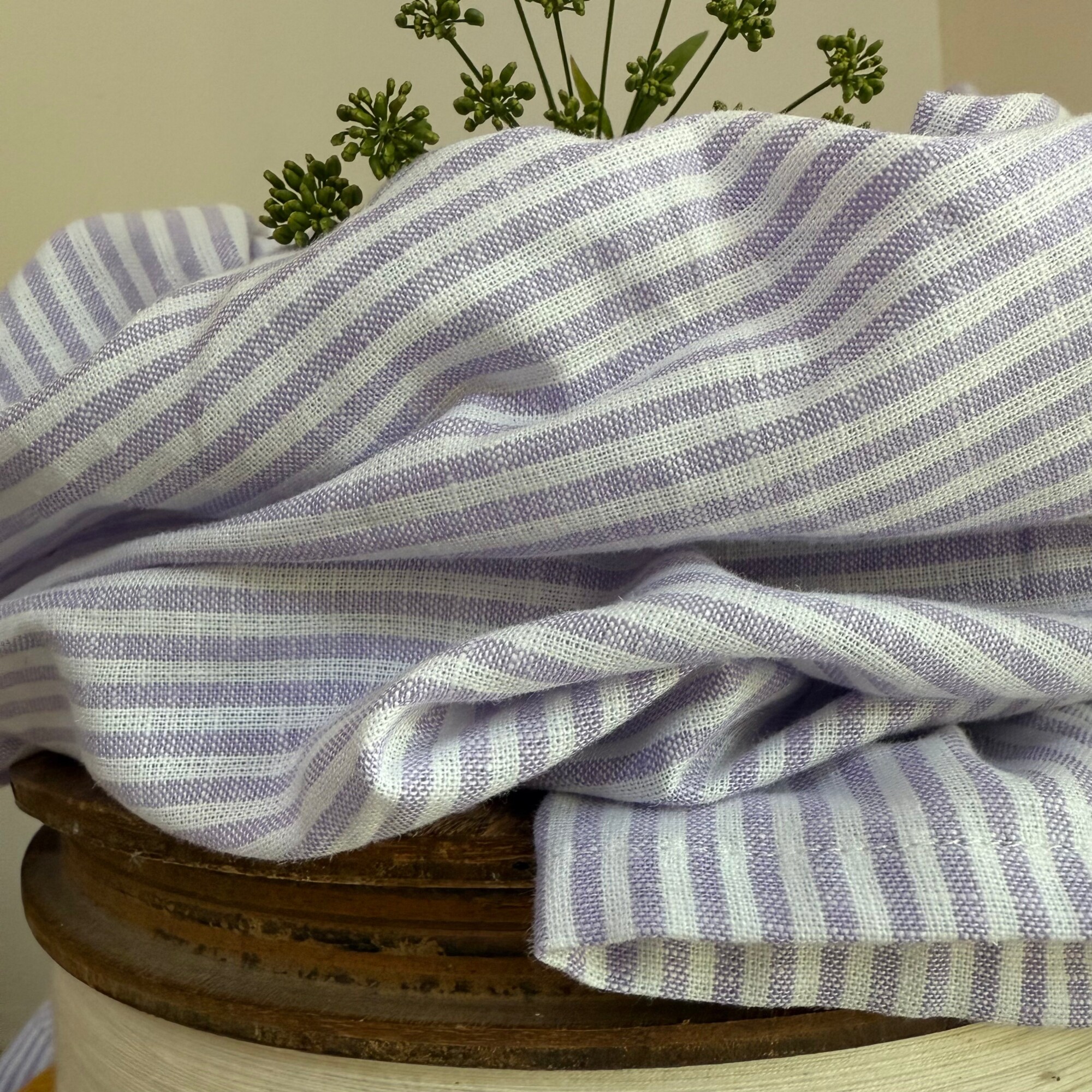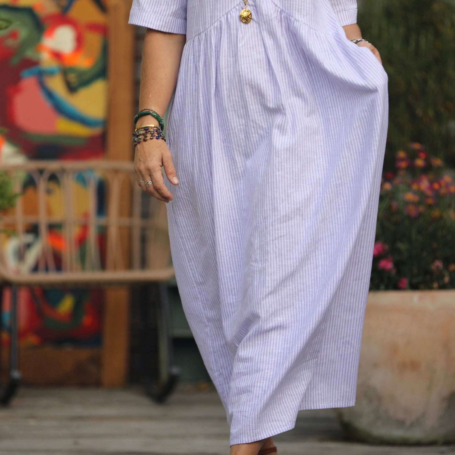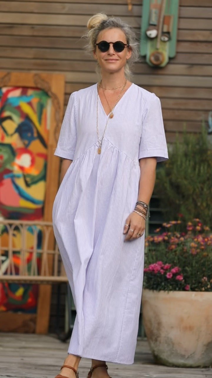 Robe Edonie - rayure lin/coton parme