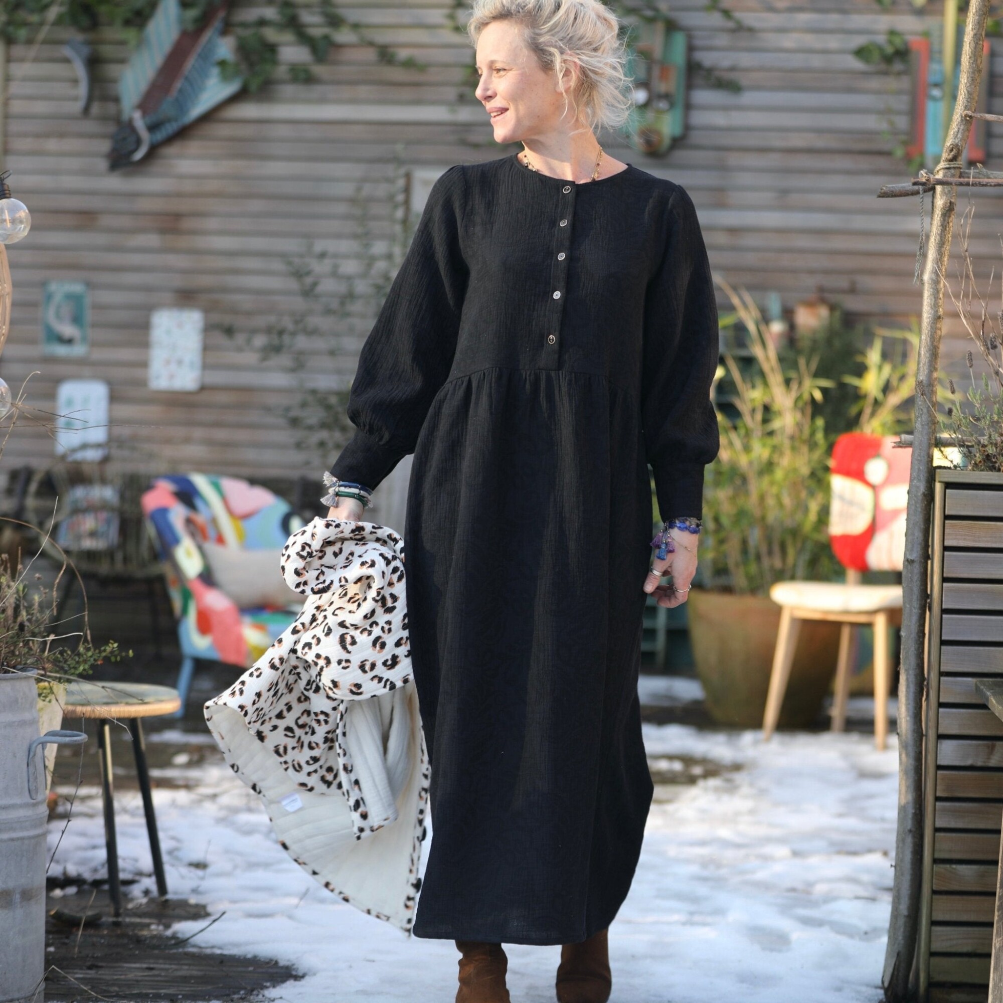 Robe Isis - jacquard coton/lin noir