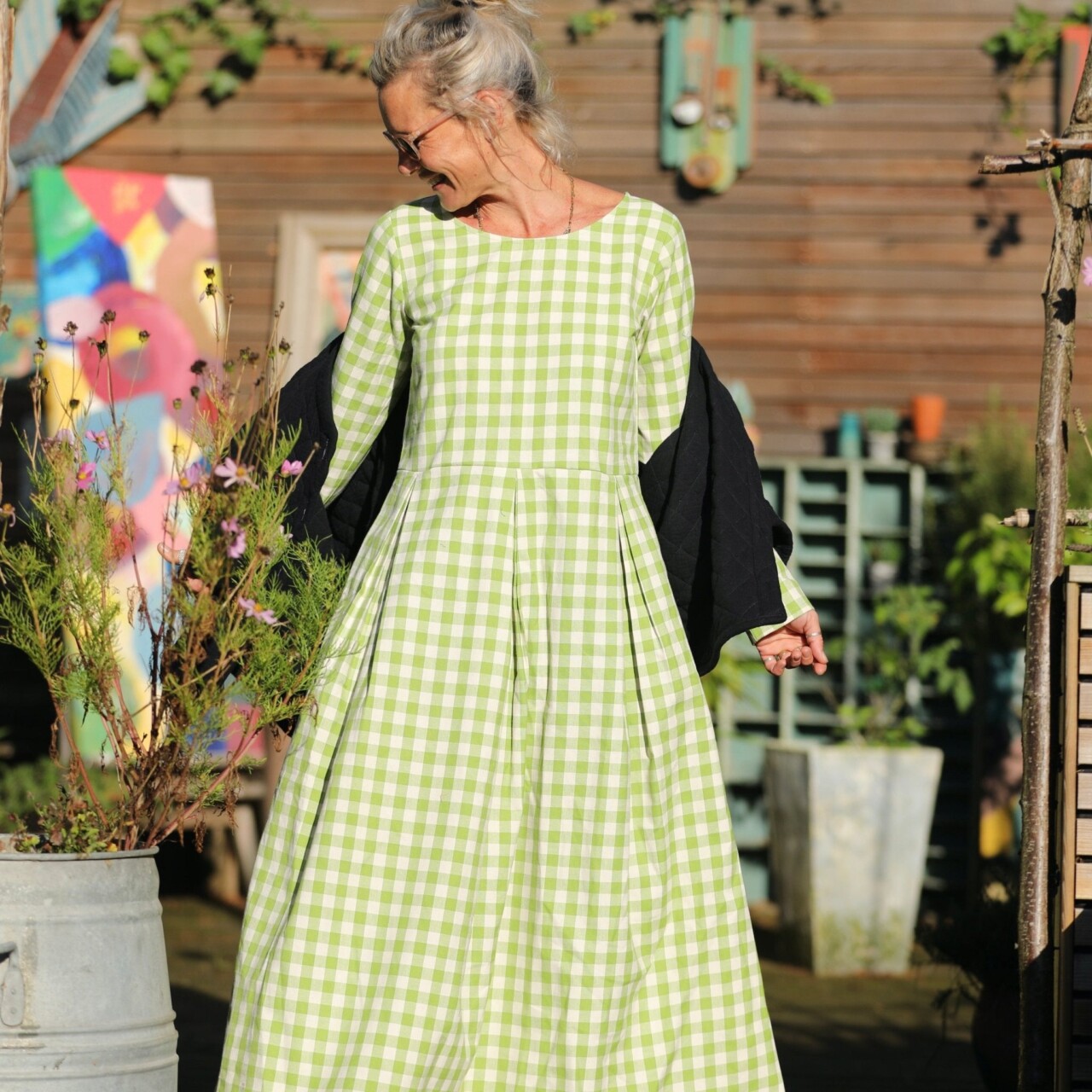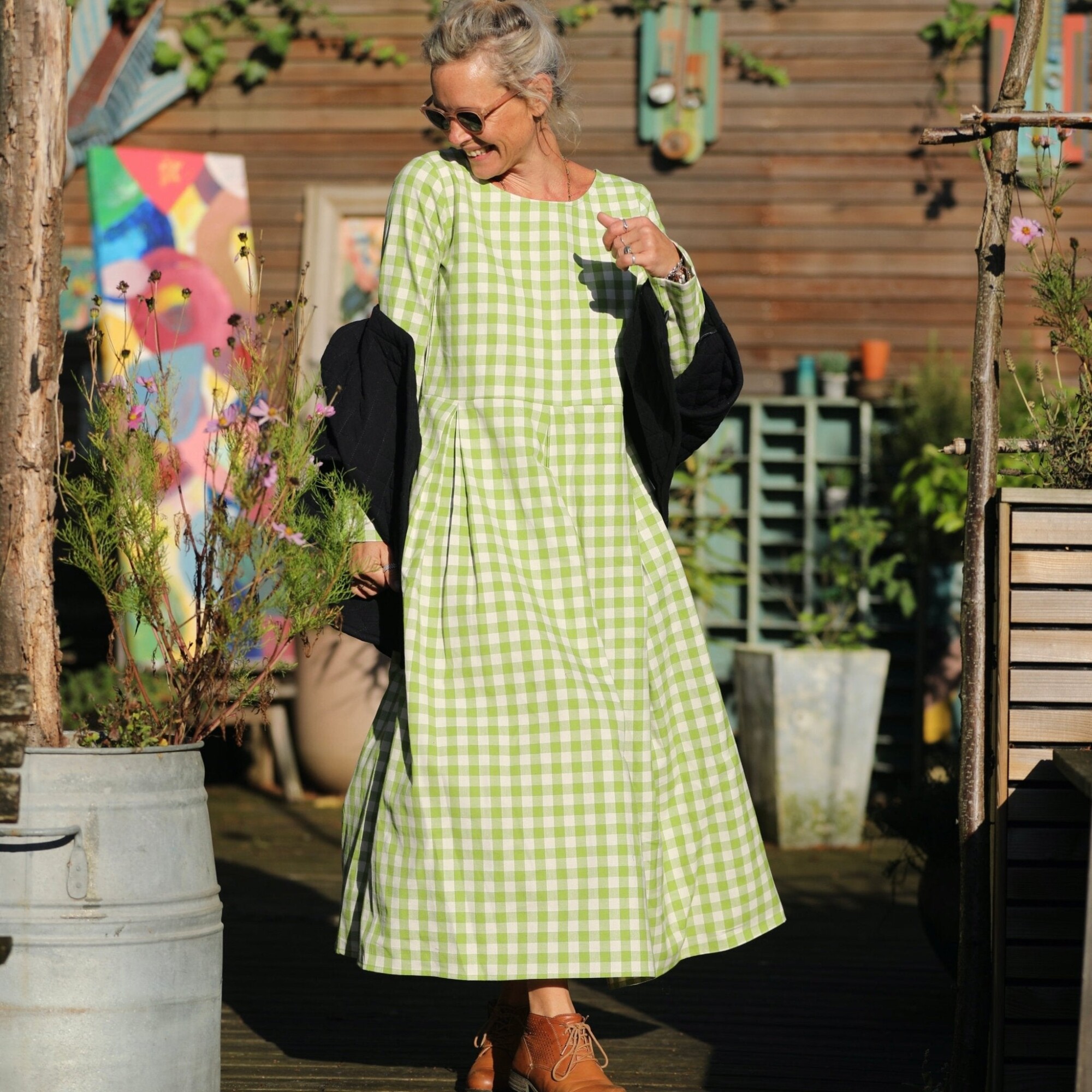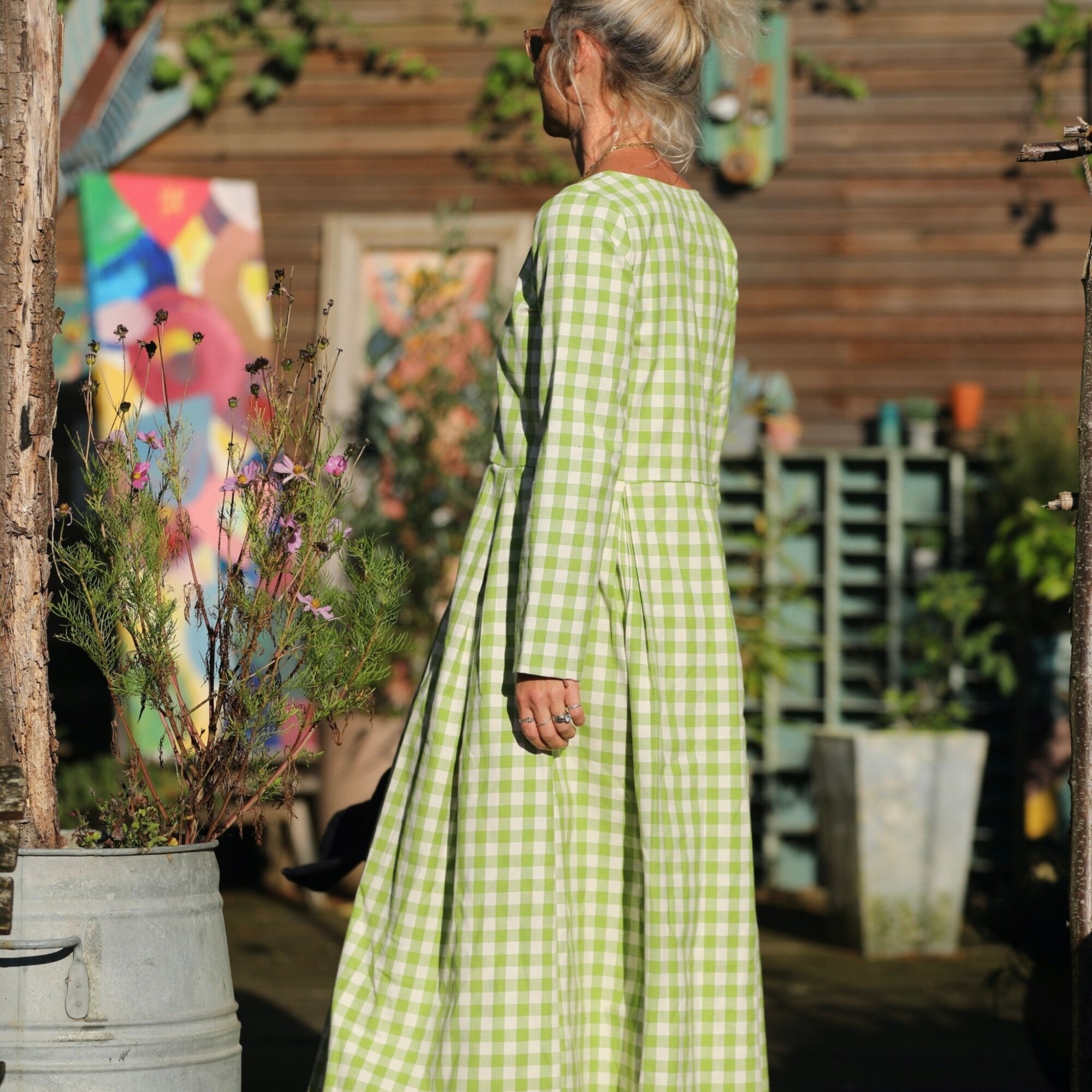 Robe Louisa - carreaux de coton vert anis