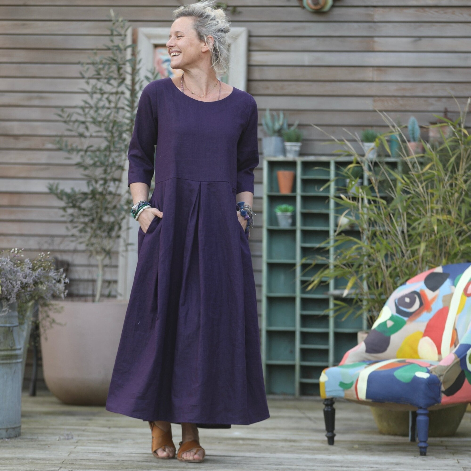 Robe Louisa manches 3/4 lin lilas