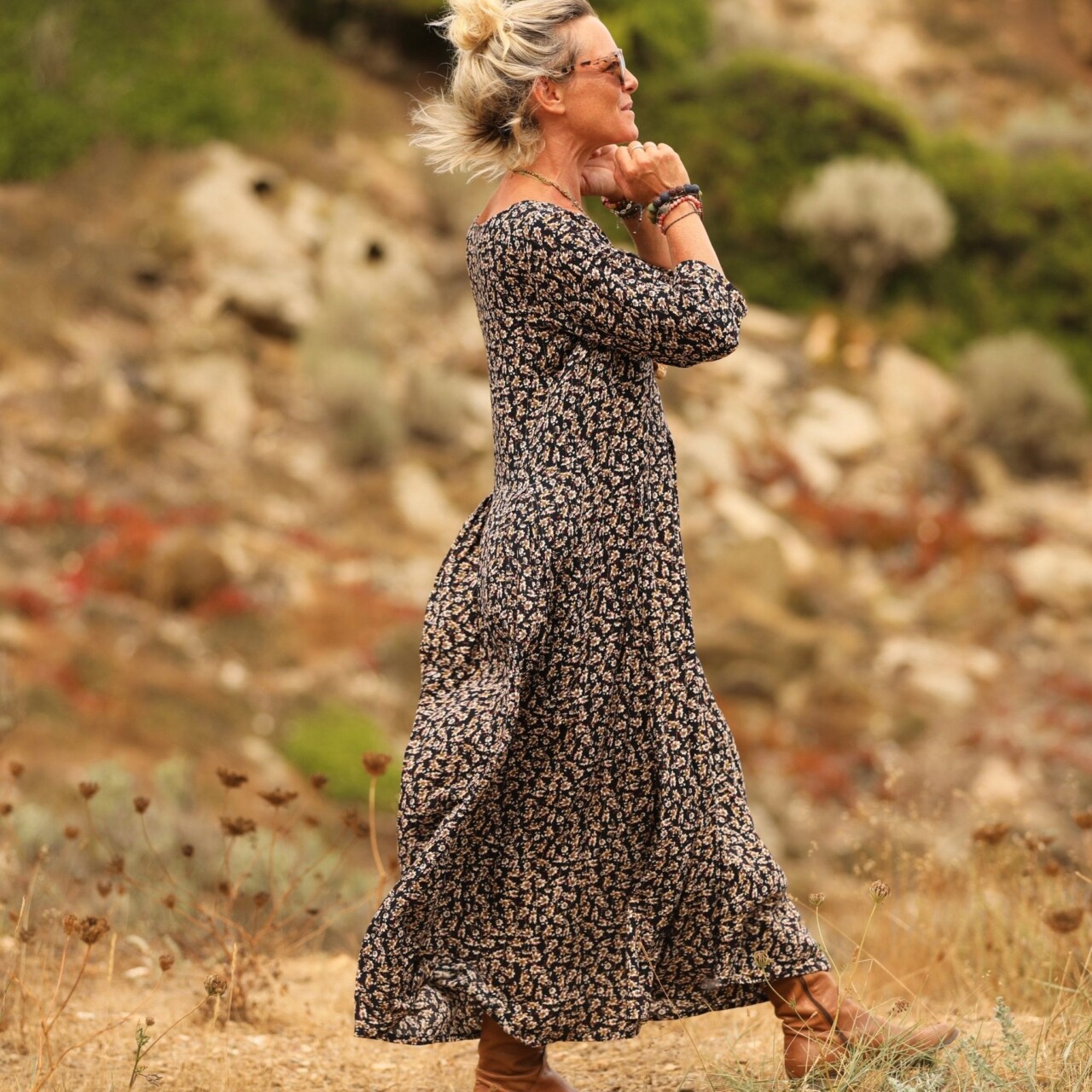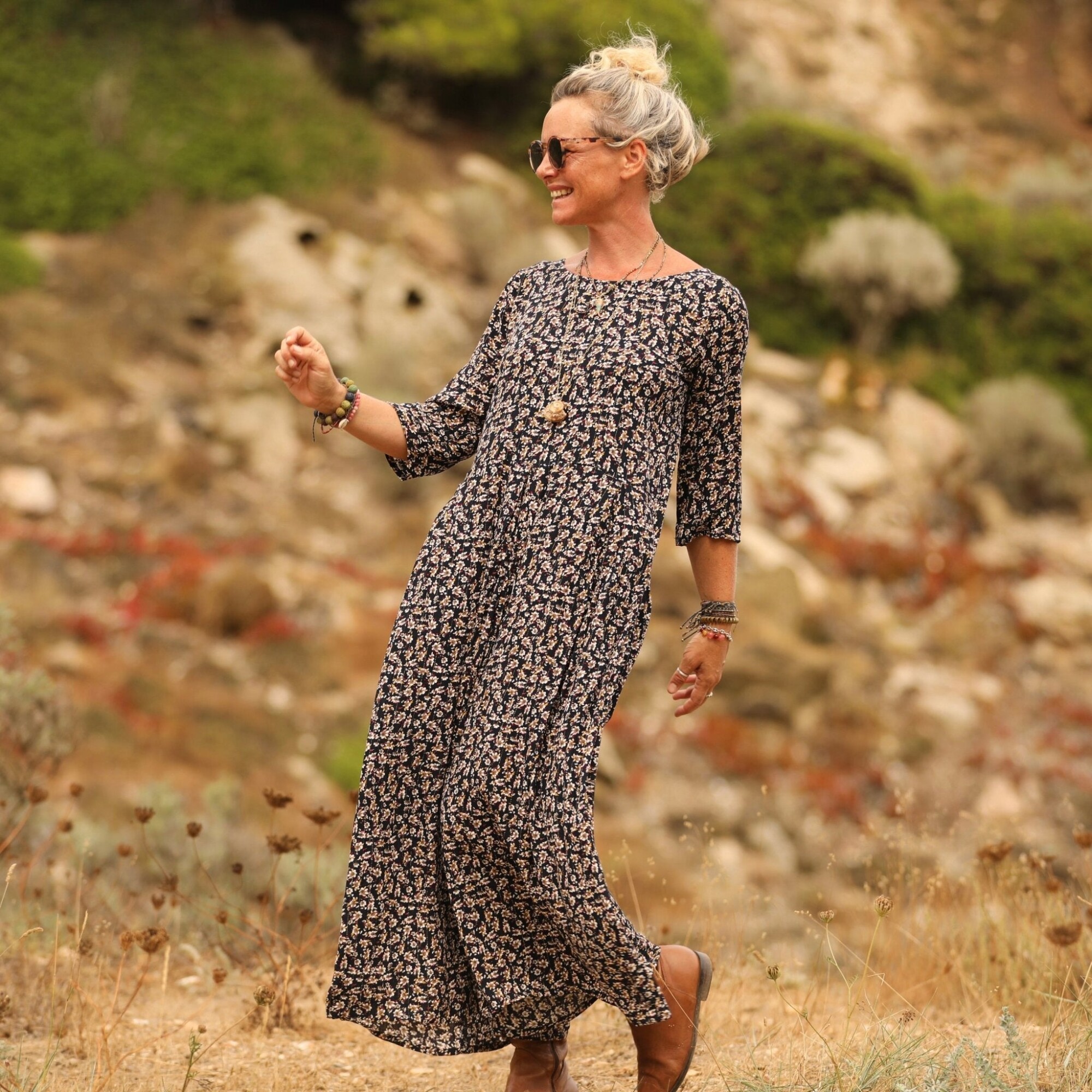 Robe Louisa viscose fleurettes dorées