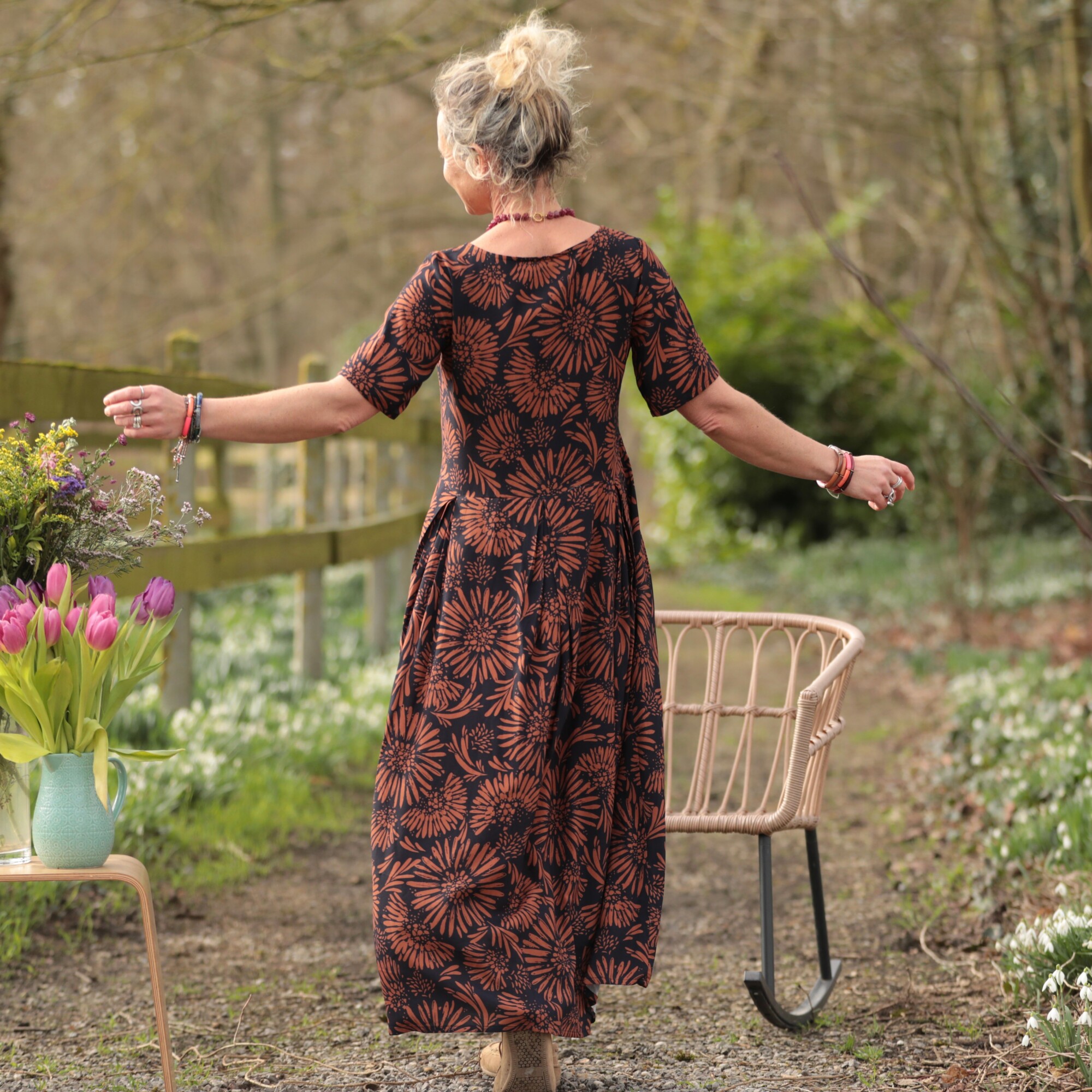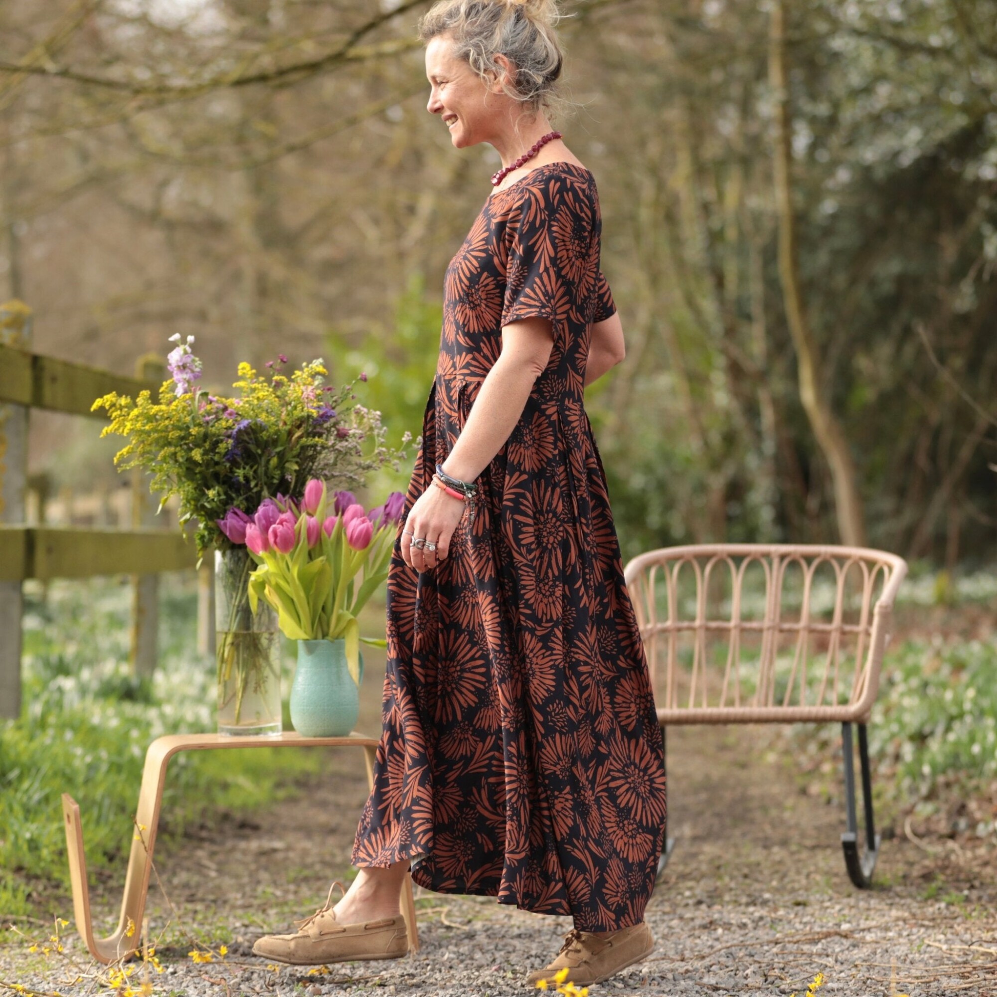 Robe Louisa - Viscose fleurie camel