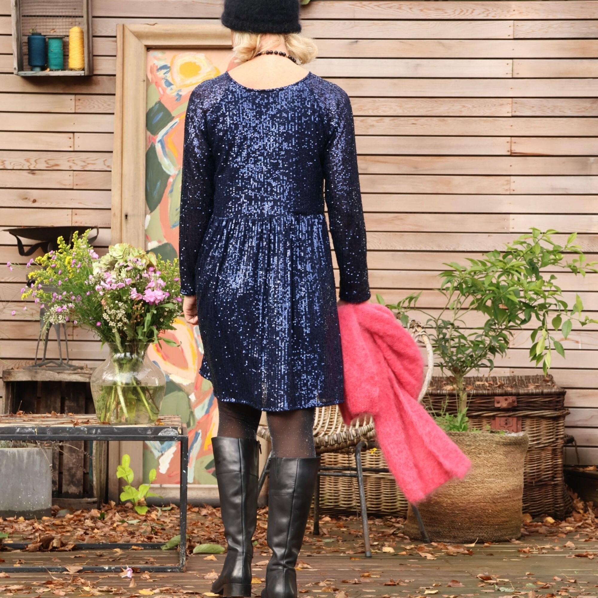 Robe Mia courte - sequins bleu marine