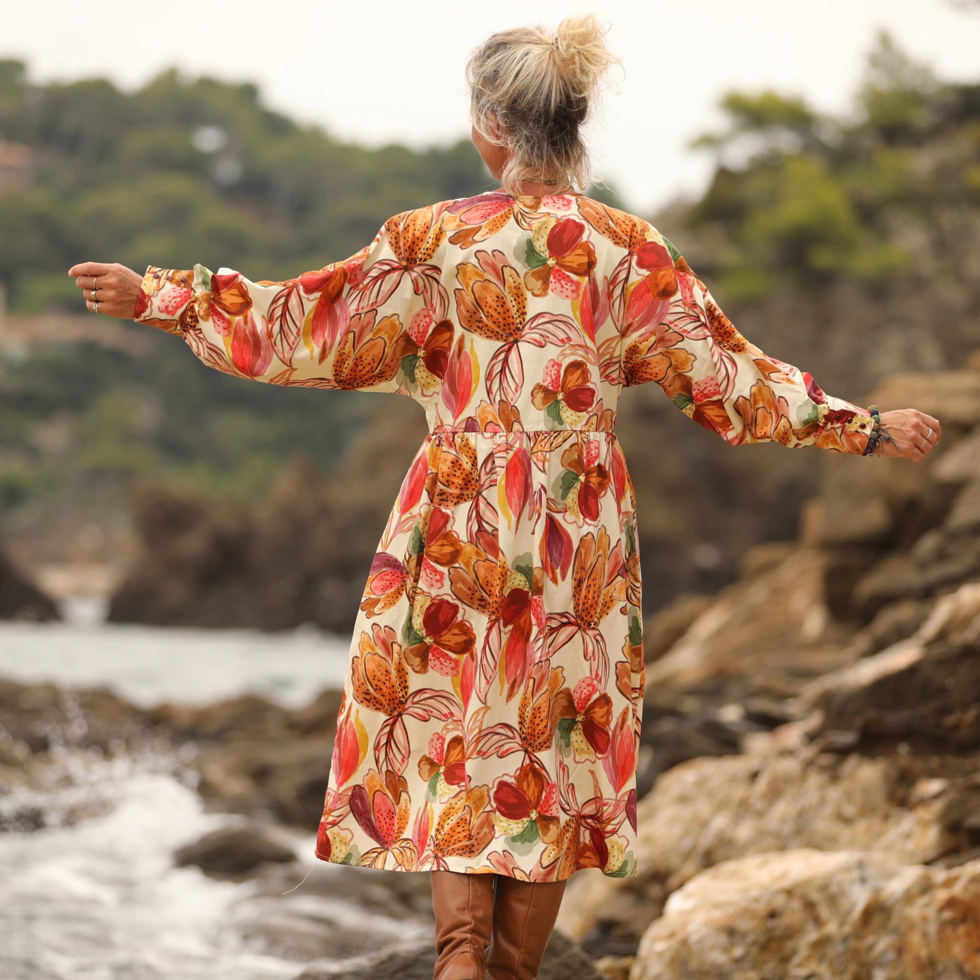 Robe Orlane - satin de coton poésie d’automne