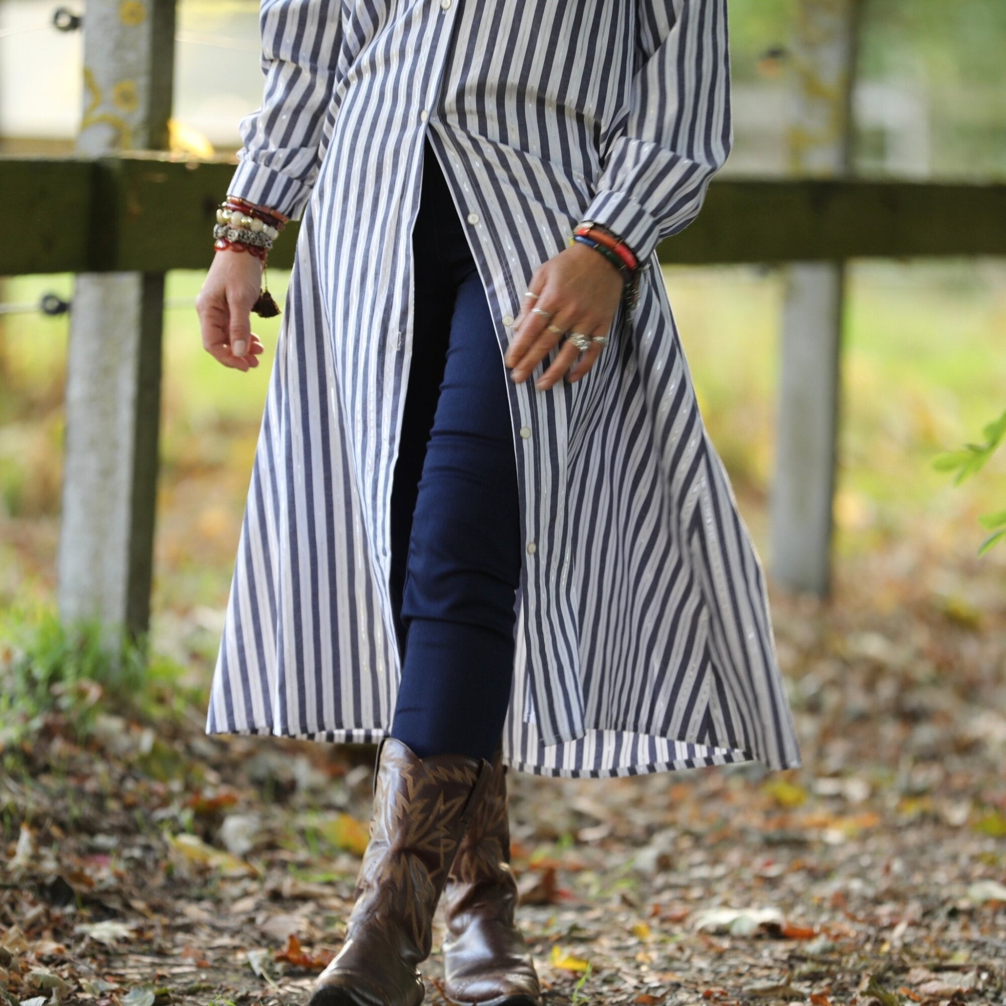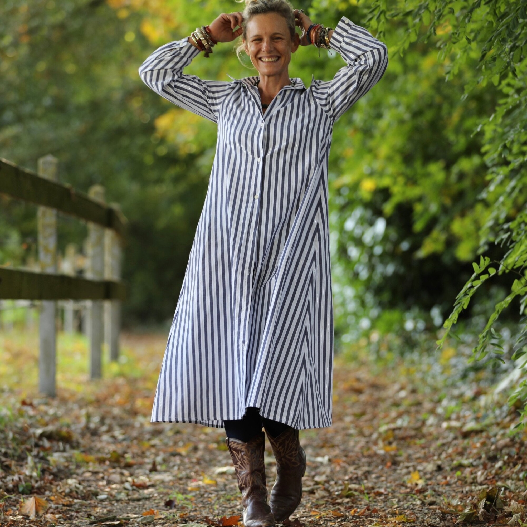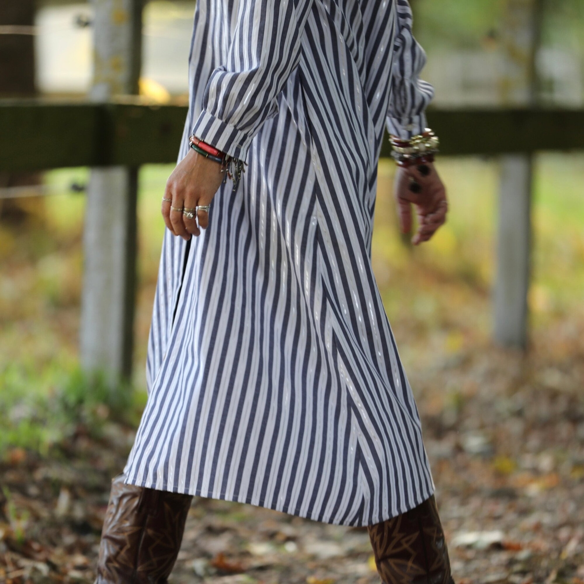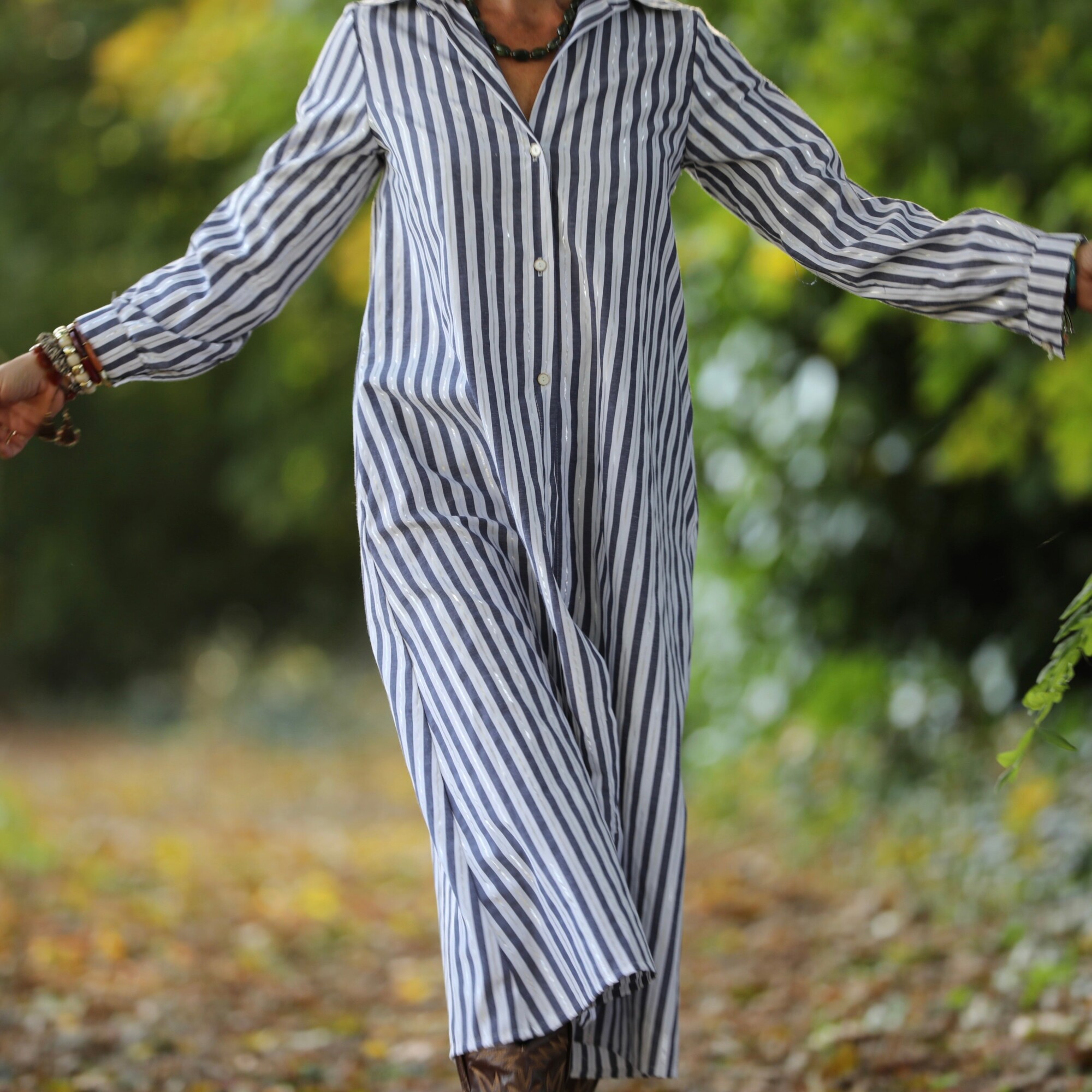 Robe Pensée - Rayures bleues argentées
