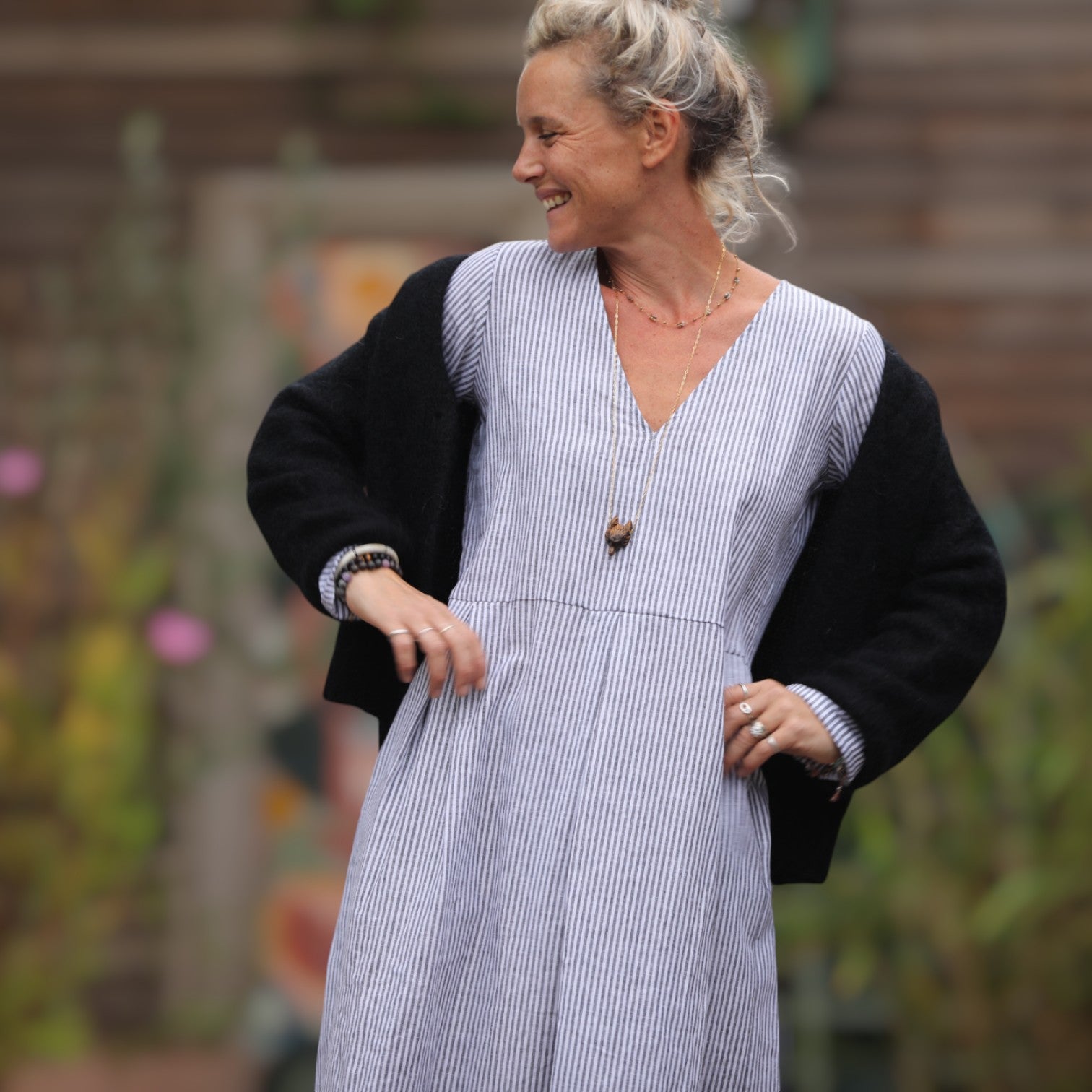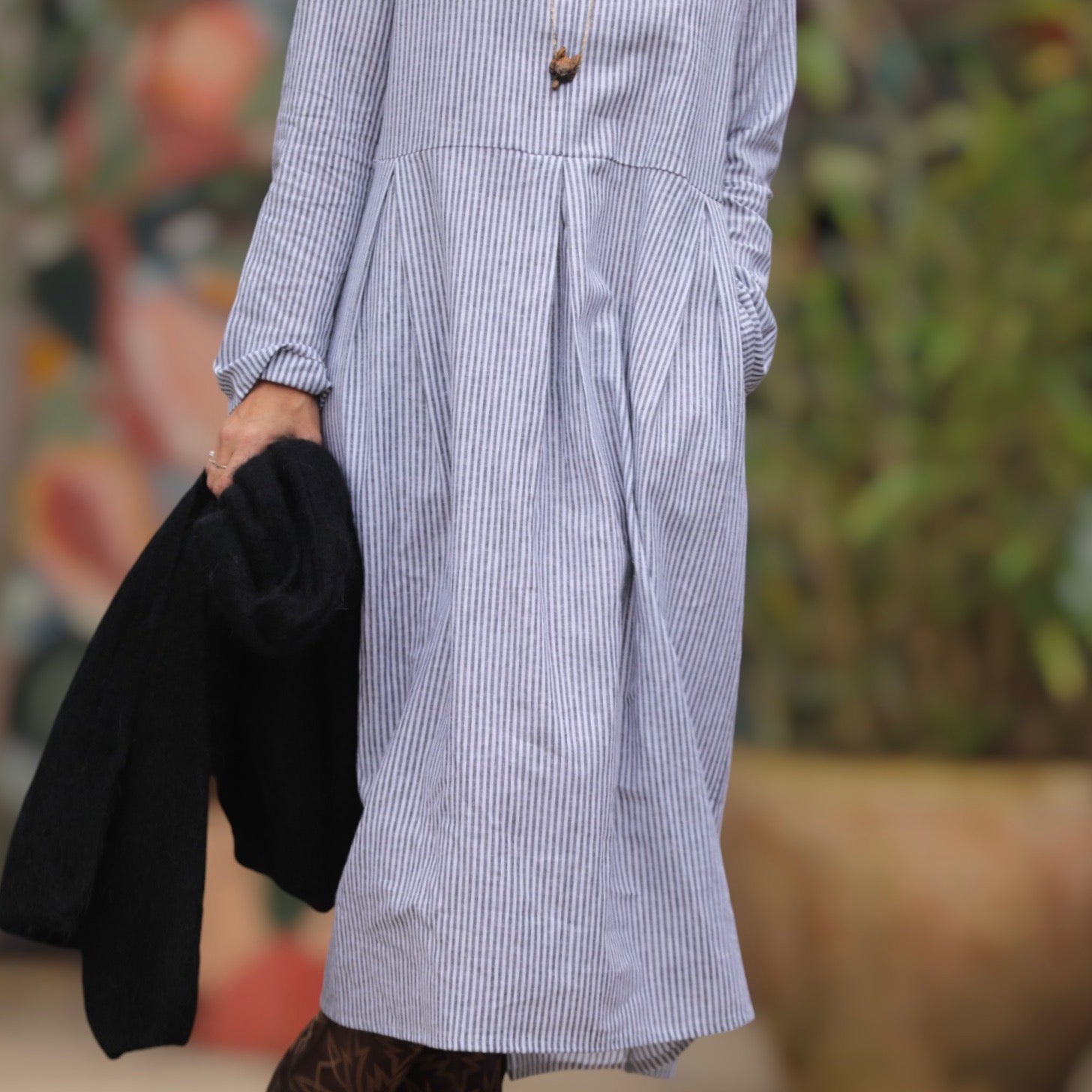 Robe Romane - coton/lin rayé noir/blanc