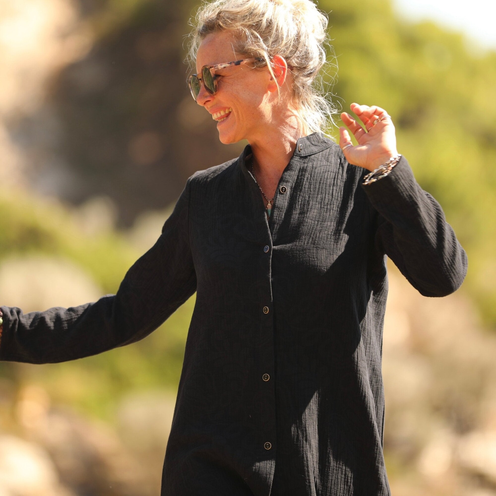 La robe Yuna se porte aussi bien en robe qu’en tunique, pour varier les styles au gré de vos envies. On aime son allure japonisante, sublimée lorsqu’elle est associée à une jupe-culotte.