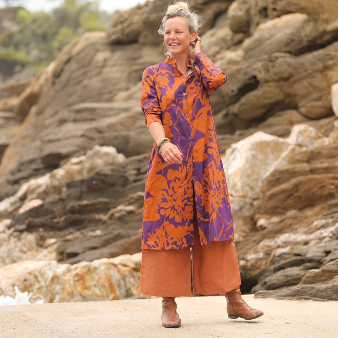 La robe Yuna se porte aussi bien en robe qu’en tunique, pour varier les styles au gré de vos envies. On aime son allure japonisante, sublimée lorsqu’elle est associée à une jupe-culotte.