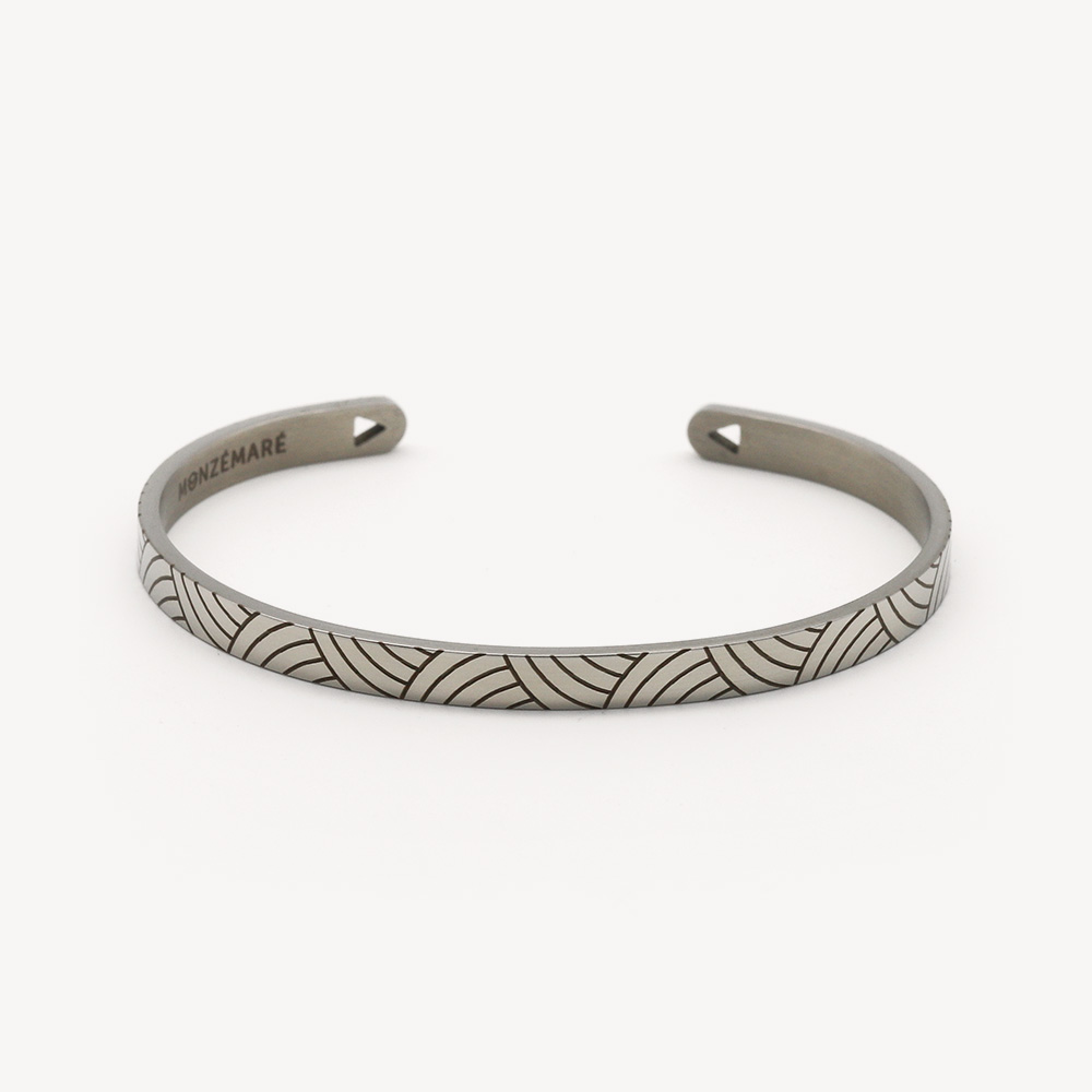 Bracelet pour femme Acier inoxydable Gravure au laser Taille unique / Réglable à la main (Par déformation*) Ne convient pas pour les poignets de plus de 20cm * Ajustement possible du bracelet en le resserrant ou en l'élargissant légèrementCette manipulation peut entrainer une déformation pour s'adapter à votre poignet et avoir un confort optimal