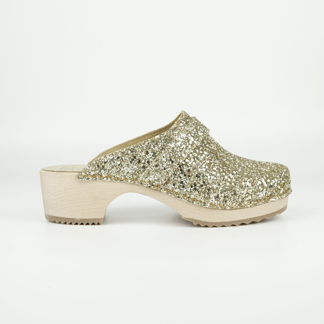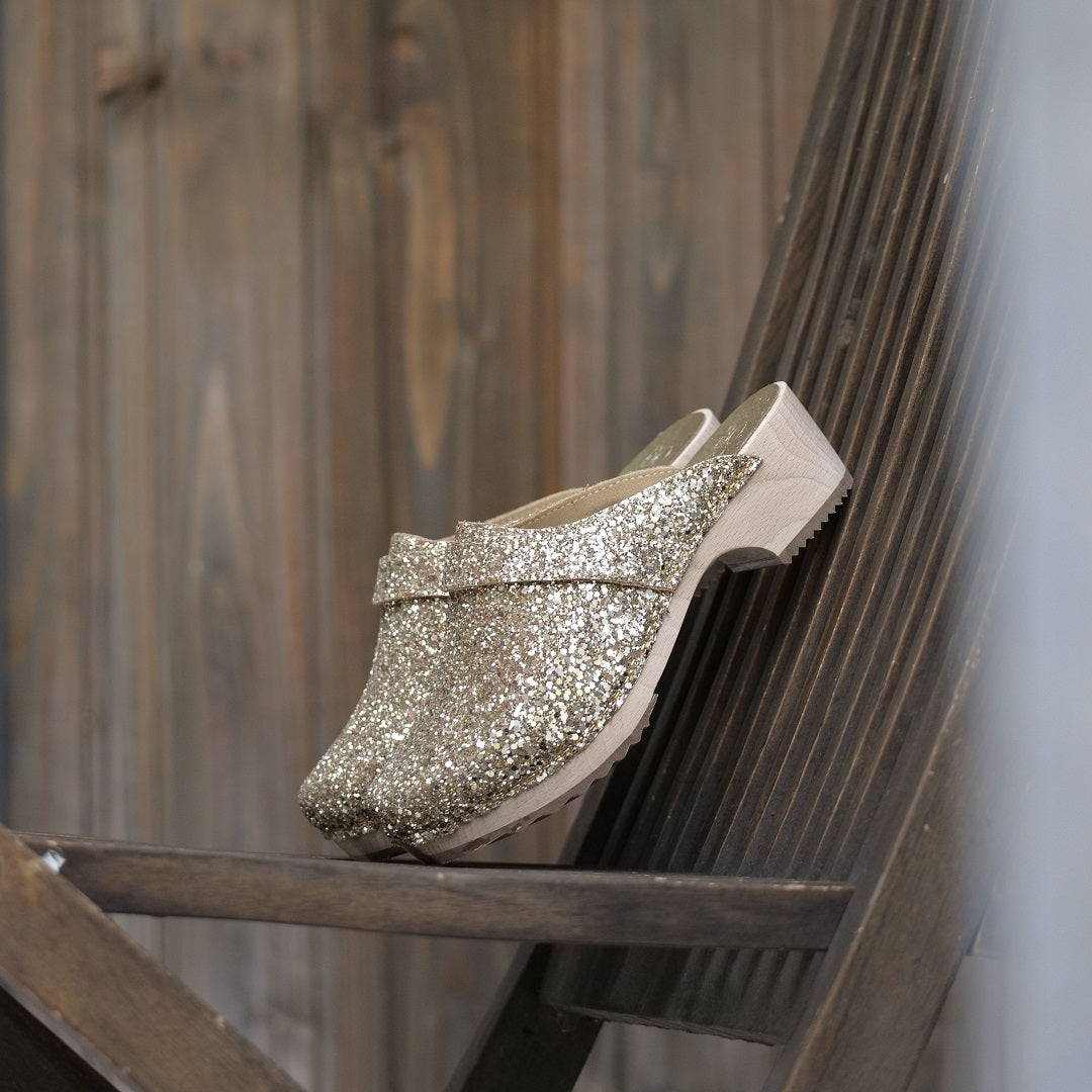 Pétillant, le sabot Camille mets du pep’s à vos looks. Ce sabot basique se mariera avec de nombreux looks, et ses paillettes vous mettront des étoiles dans les yeux. Et si vous avez envie d'une autre couleur ? Optez pour la personnalisation de ce modèle et changez la couleur des paillettes ou partez sur un cuir lisse brillant ou avec effet ! La semelle en bois classique est confortable et la finition clous sur sa version jean fait de lui le sabot seventies tendance ! Sabot avec dessus tissus doublé cuir Bride fixe en cuir sur le coup de pied Finition agrafé Talon 5 cm et plateforme 2 cm Boite en kraft - emballage recyclé et recyclable Fabrication 100% française dans nos ateliers Chaque paire est fabriquée à la main, de façon individuelle et artisanale, ce qui rend le produit unique.