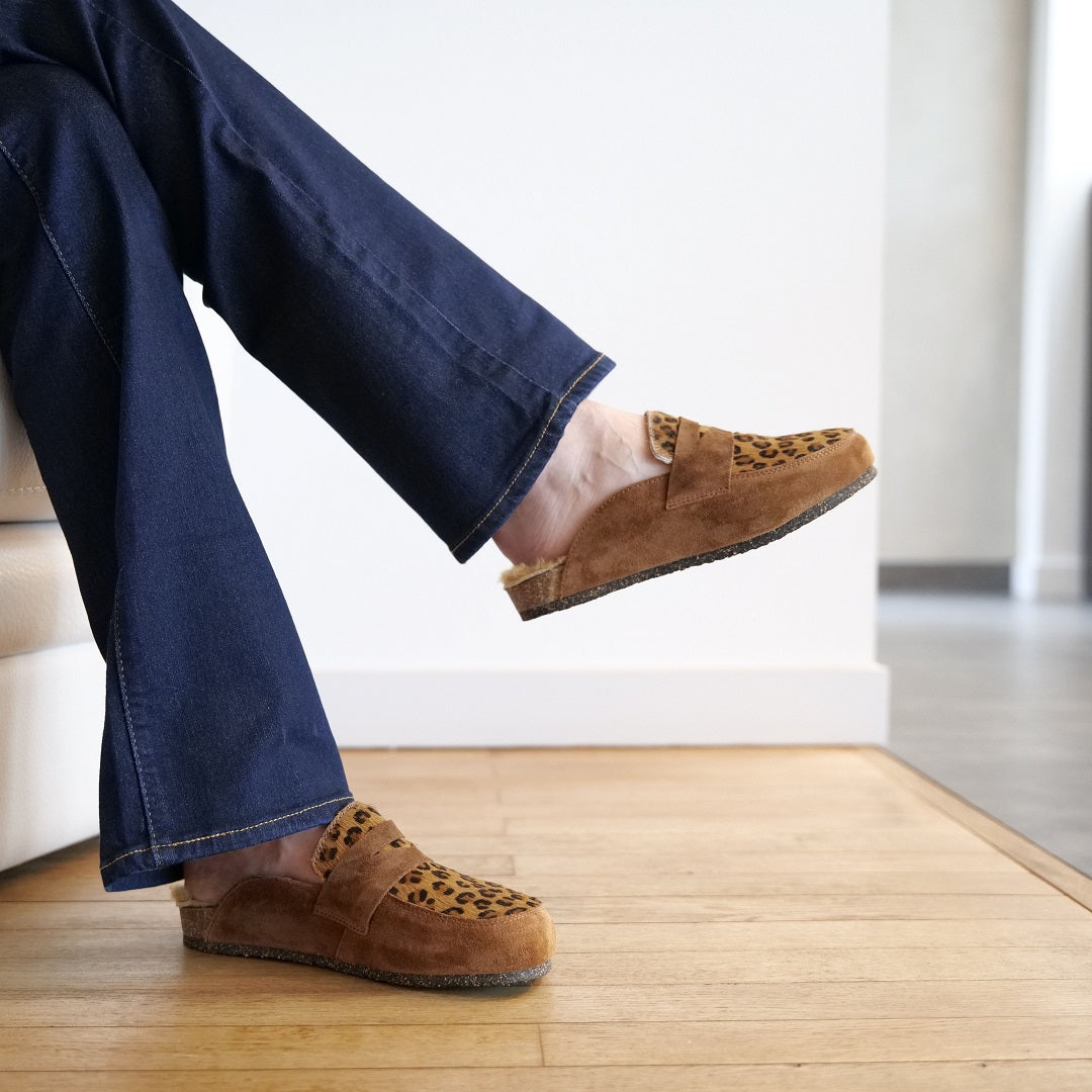 Elégant, le sabot Lauren vous accompagnera cet hiver avec sa touche féline pour un style mocassin et pour donner du pep’s à votre look. La semelle intérieure en mouton de ce sabot fourré léopard apportera confort et chaleur. Sa semelle liège est robuste et offre un très grand confort en toute circonstance.