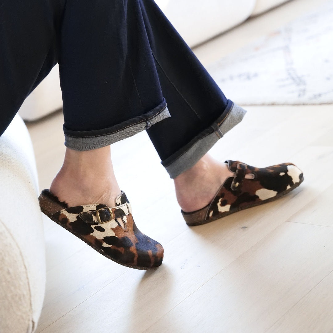 Le sabot Lénie est un must have pour chausser la femme moderne qui ose affirmer son style et sa personnalité. Arborant un imprimé léopard chic ou des poils imprimés animaliers qui se remarquent à coup sûr, ce sabot fourré à la mode sublime votre silhouette avec audace dès la fin de l’été. Que vous ayez envie d’être stylée à la maison ou de compléter vos looks d’automne et d’hiver avec caractère, misez sur ce sabot moumoute en cuir et laine de mouton à fabrication 100 % française pour faire rentrer l’artisanat local dans votre dressing avec originalité.