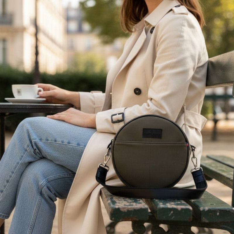 Un sac rond, élégant et engagé Alliant design minimaliste et valeurs écoresponsables, ce sac bandoulière rond est l’accessoire idéal pour sublimer votre style tout en adoptant une mode plus durable. Compact et fonctionnel (H 20 cm x L 20 cm x P 7 cm), il se ferme à l’aide d’une fermeture éclair YKK à double curseur, assurant une ouverture fluide et sécurisée.