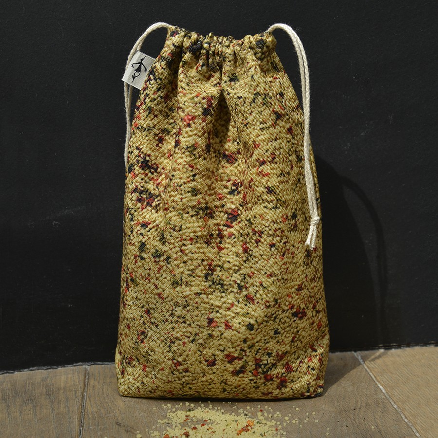 Une cuisine écologique ? Adoptez le sachet de rangement Couscous trompe l'œil de Maron Bouillie ! Ces sacs alimentaires sont indispensables pour ranger vos courses.
