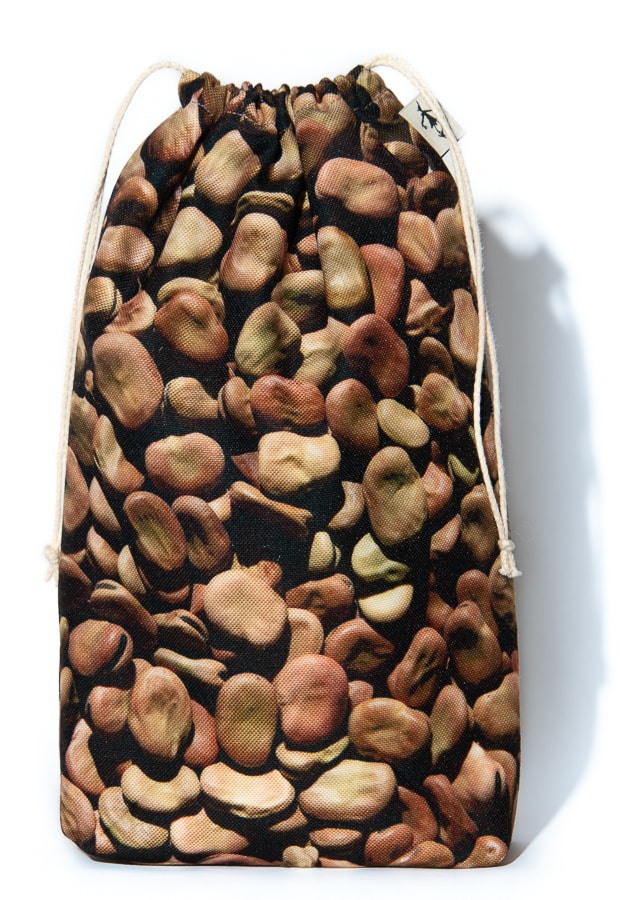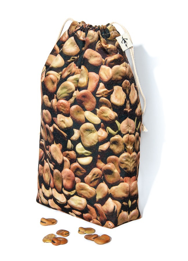 Une cuisine écologique ? Adoptez le sachet de rangement Fèves trompe l'œil de Maron Bouillie. Ces sacs alimentaires sont indispensables pour ranger vos courses avec style