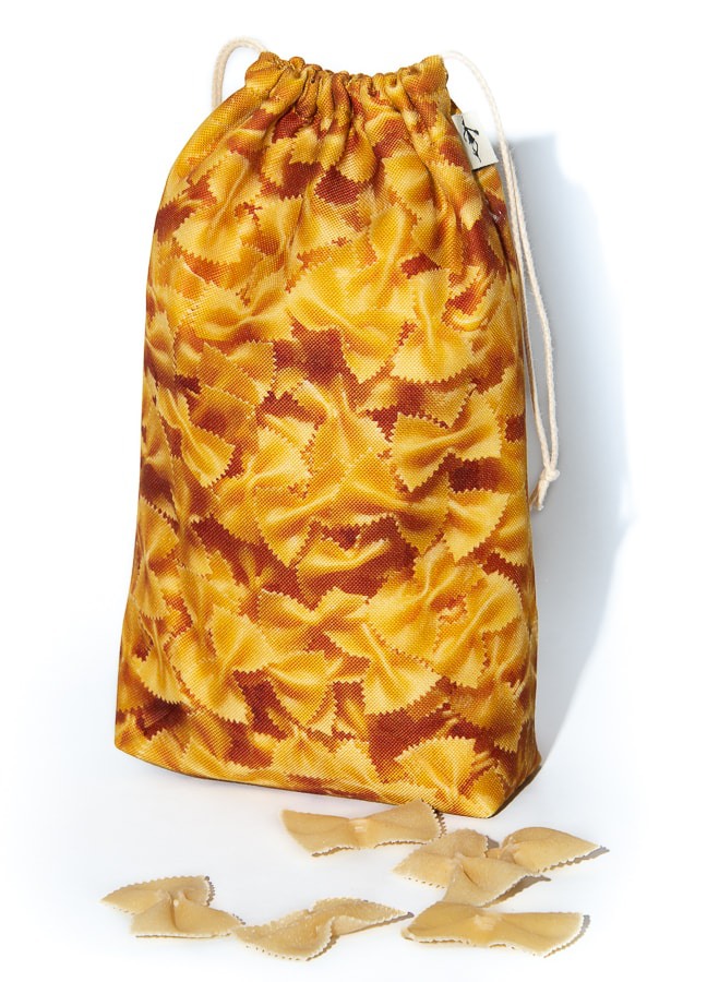 Une cuisine écologique ? Adoptez le sachet de rangement pâtes Farfalles trompe l'œil de Maron Bouillie ! Ces sacs alimentaires sont indispensables pour ranger vos courses avec style