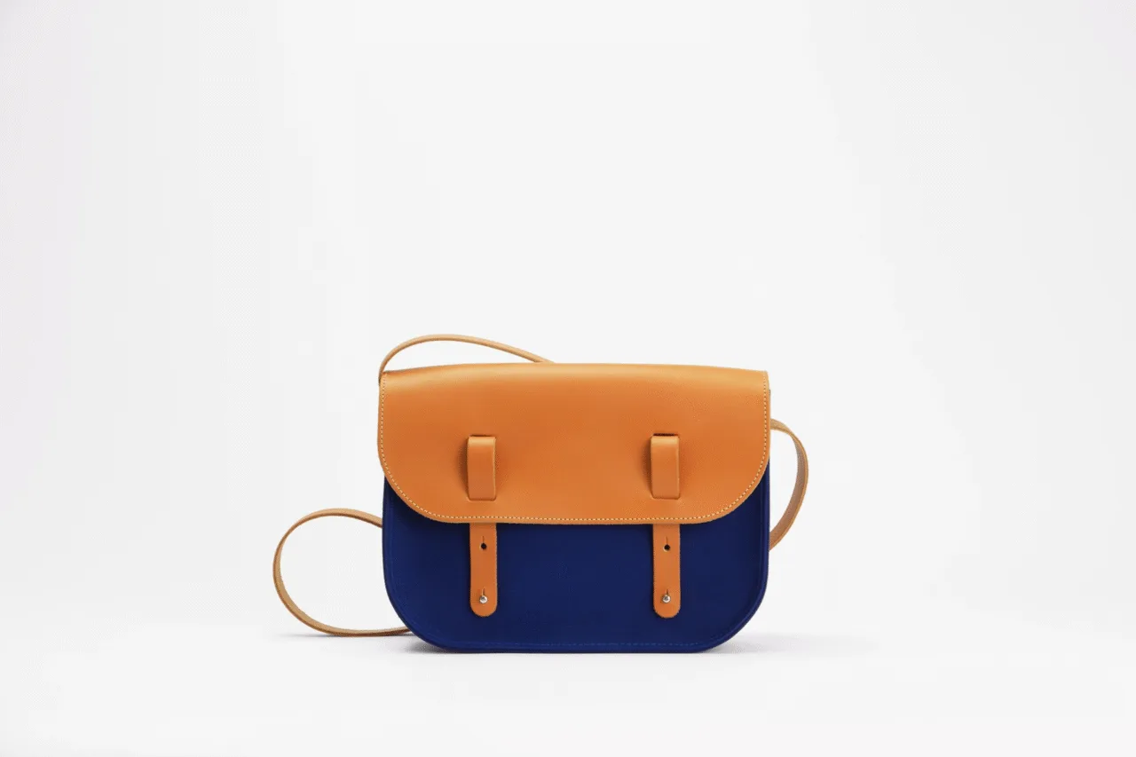 Sac besace (gibecière) en toile et cuir - bleu roi Notre sac besace tendance se réinvente avec un nouveau design alliant élégance et praticité. Son rabat innovant à double fermeture offre un accès facilité à vos effets personnels tout en conservant le style minimaliste signature de Monébari. Confectionné dans notre atelier de Chauvigny, ce sac bandoulière femme marie une toile de coton robuste tissée en France à des finitions en cuir pleine fleur au tannage végétal. La toile bénéficie d'un traitement imperméable et anti-UV, garantissant une résistance exceptionnelle aux frottements et aux aléas du quotidien.
