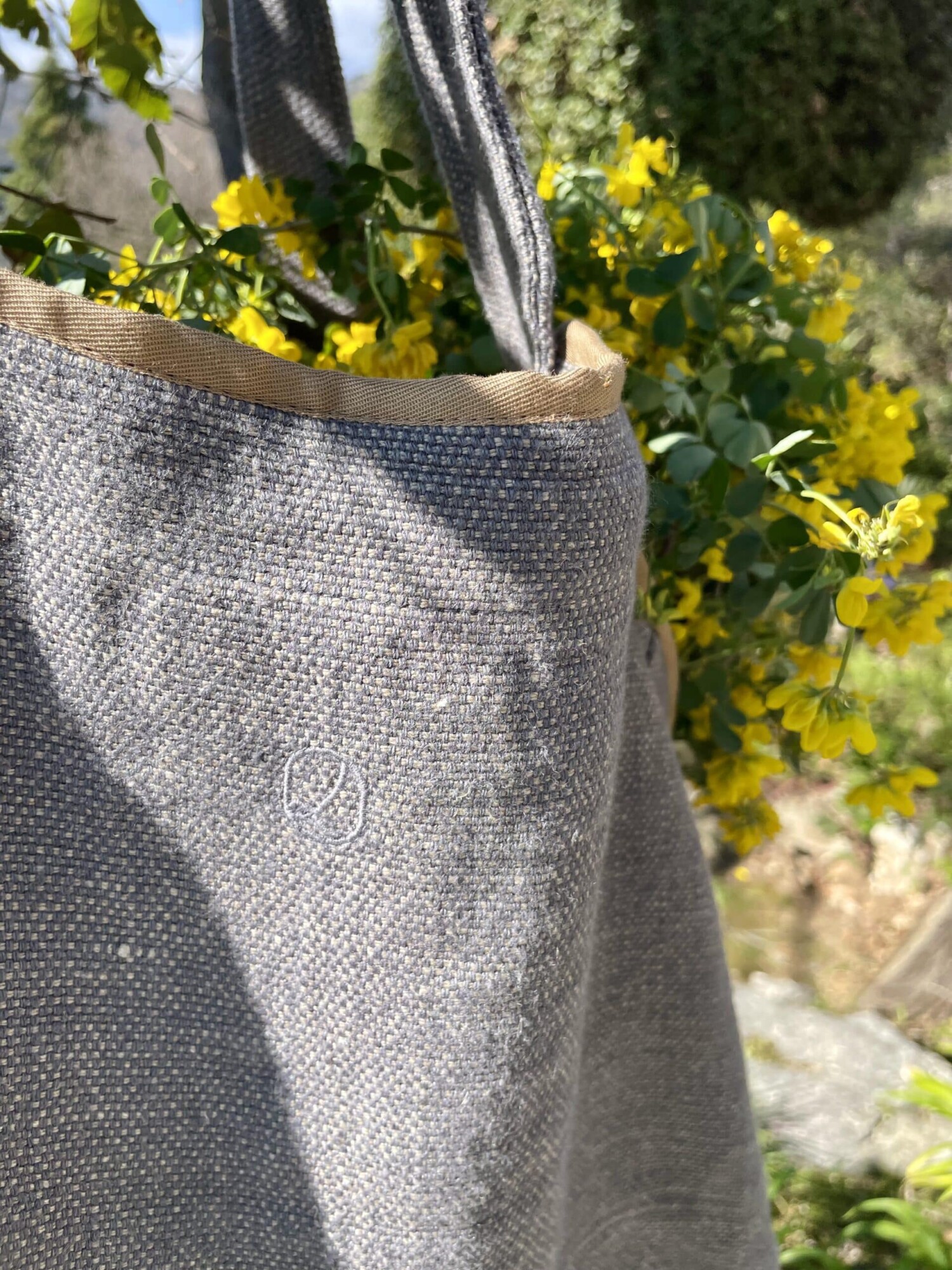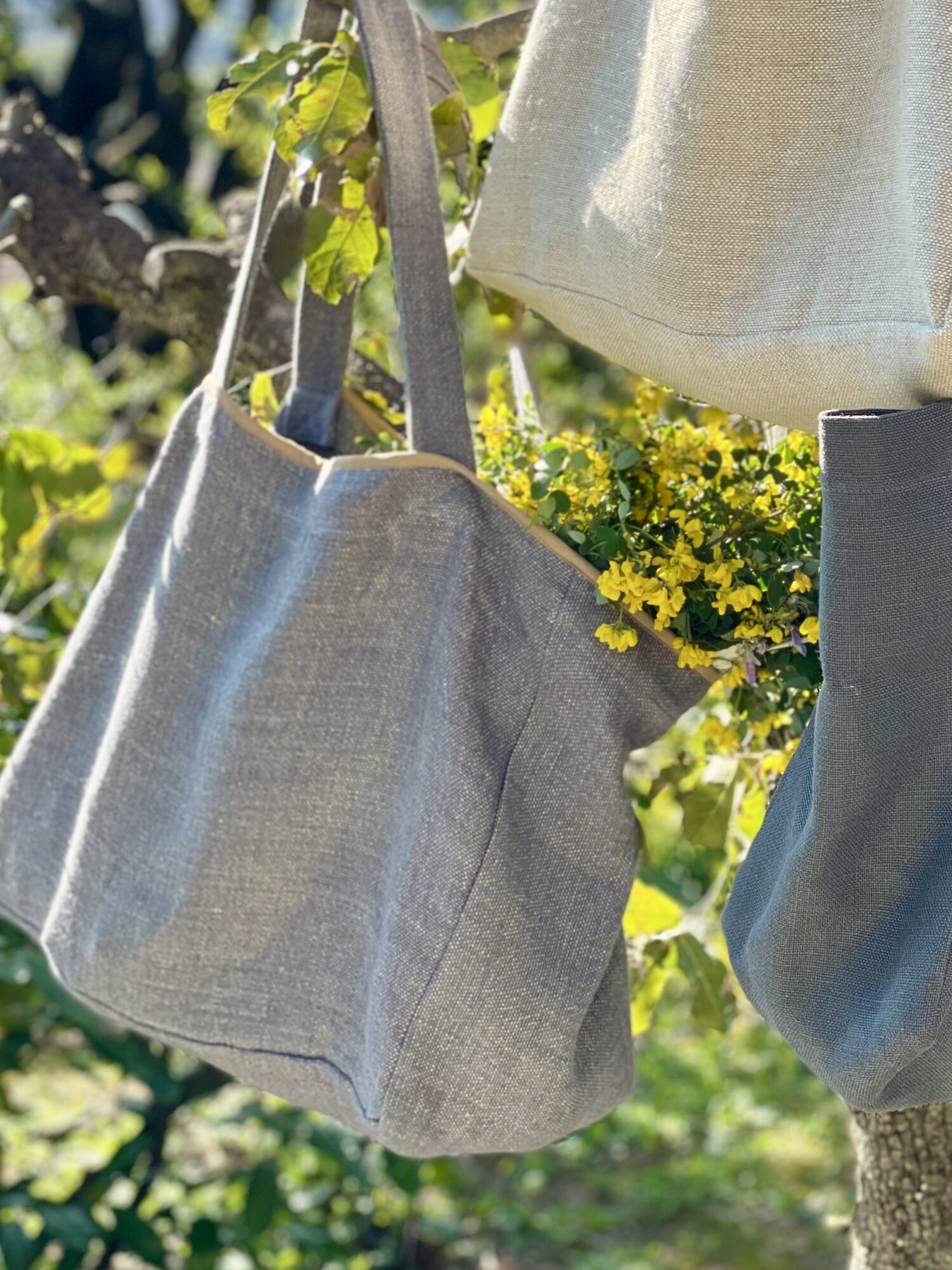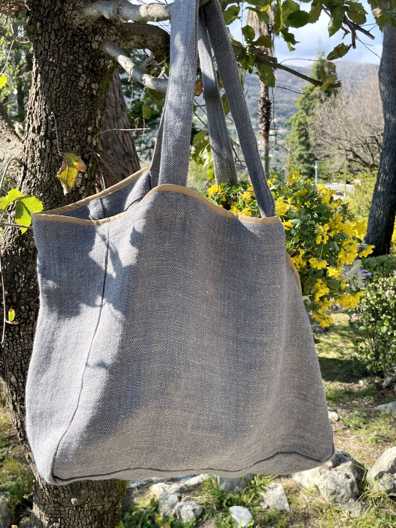 - Un sac gansé d’un sergé doré mat mettant en valeur la couleur du lin.