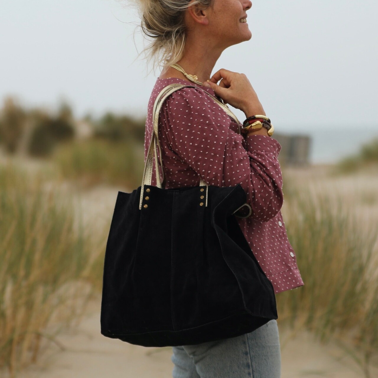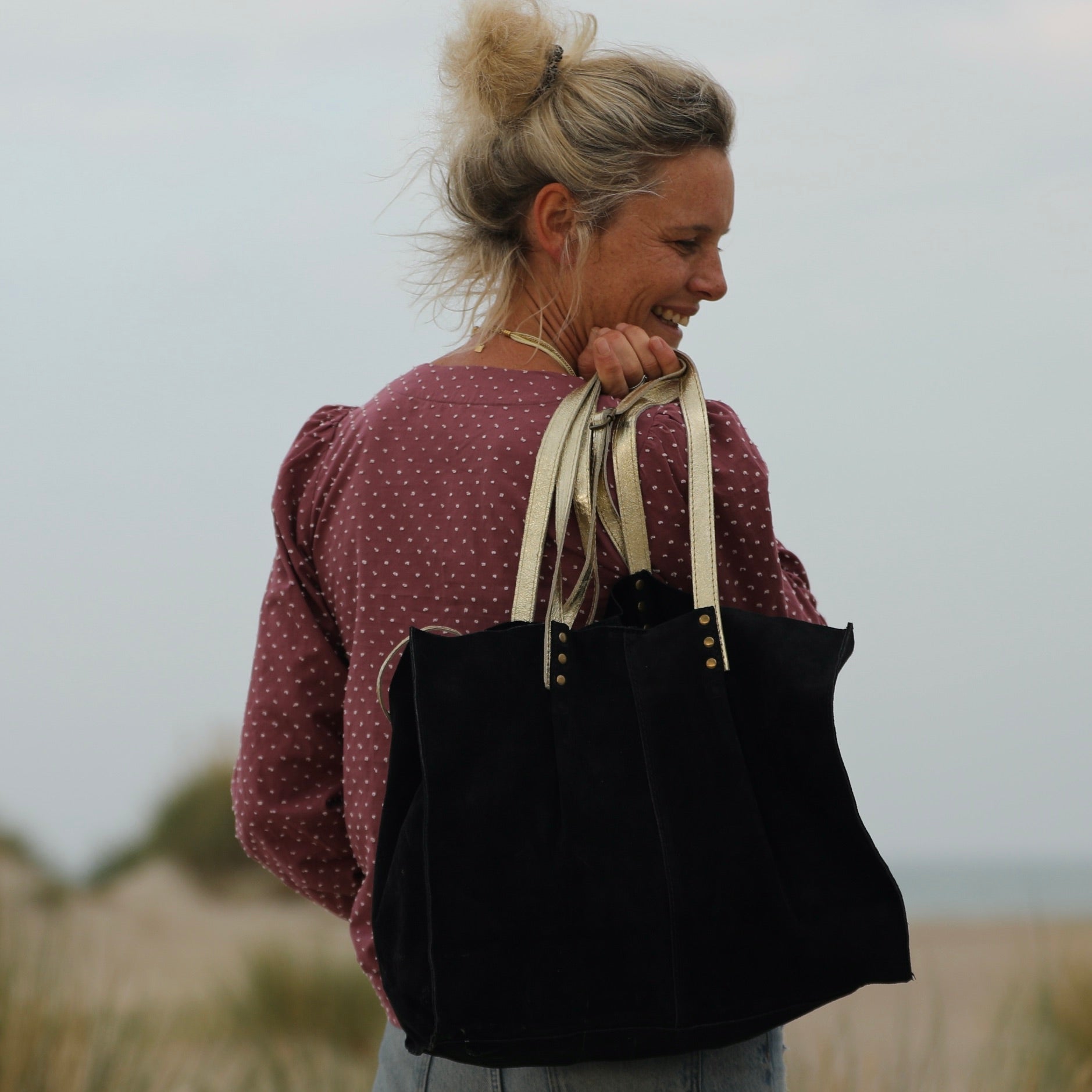 Sac Lisière – Cuir noir & reflets irisés