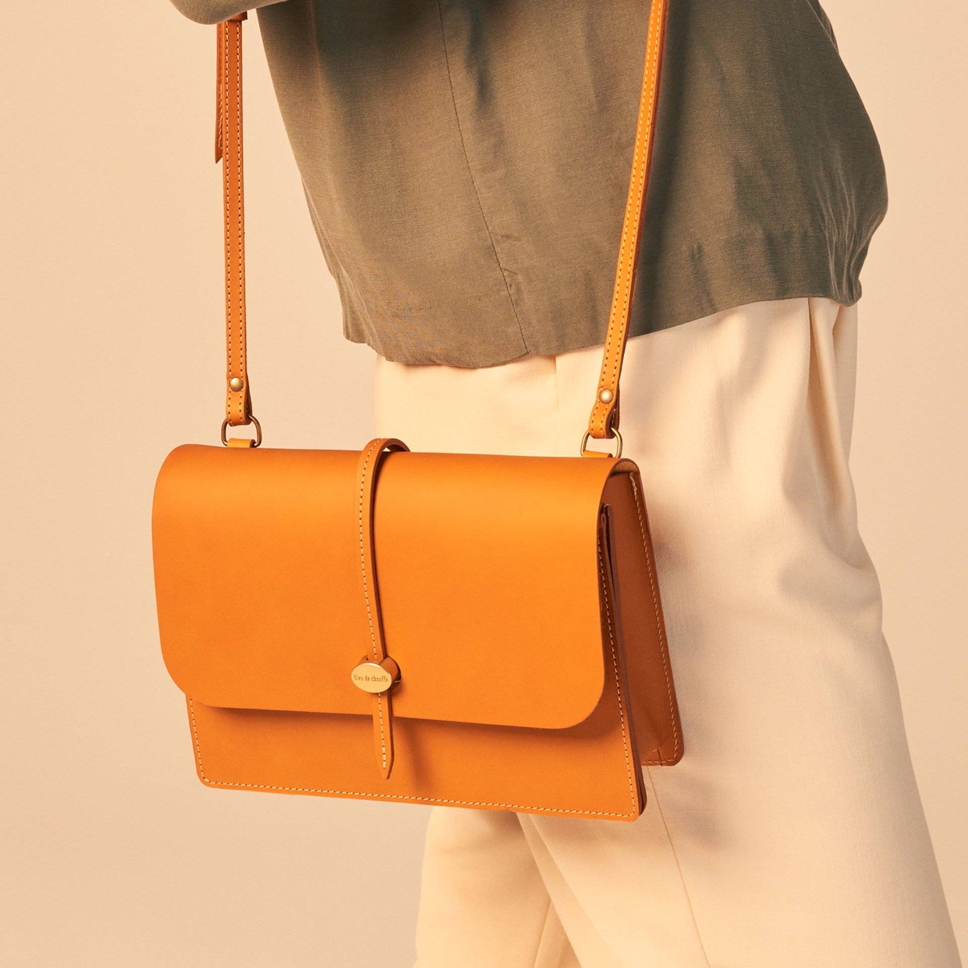 Sac bandoulière cuir - Pochette Jordi - Miel - en Cuir Tanné végétal - Fabrication artisanale Made in France - Sac besace Vintage & Workwear en Vente sur Bleu de Chauffe.