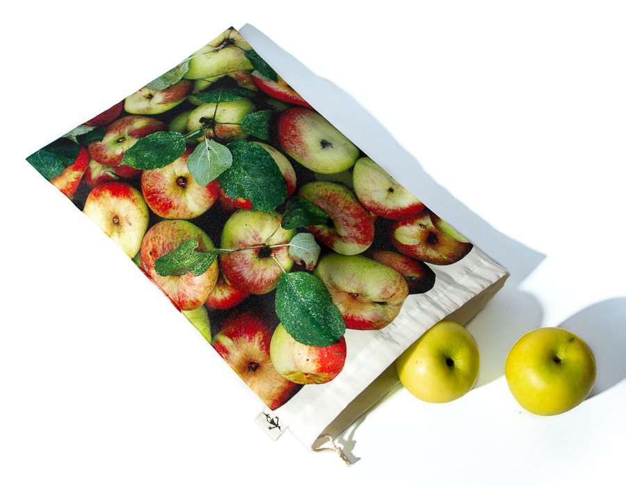 Faites des courses zéro déchet avec le sachet imprimé Pommes ! Écologique et pratique, ce sac de rangement est fabriqué en France.