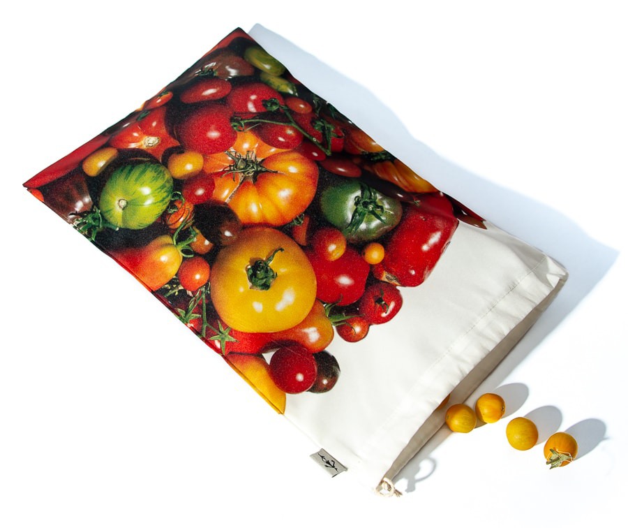 Avec le Sachet imprimé Tomates et une touche d'humour, la créatrice apporte une touche colorée à votre quotidien !