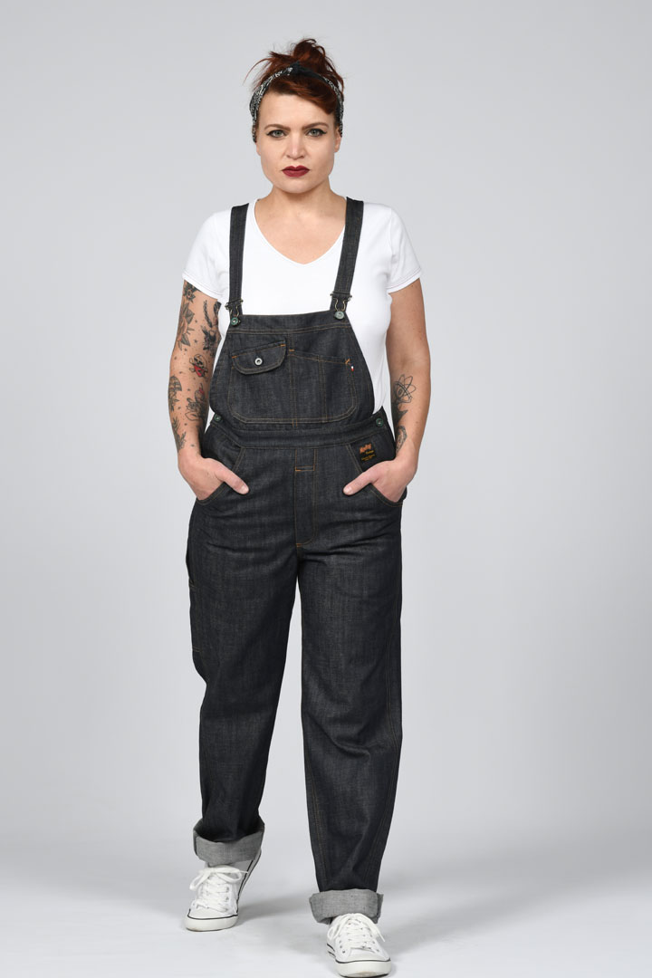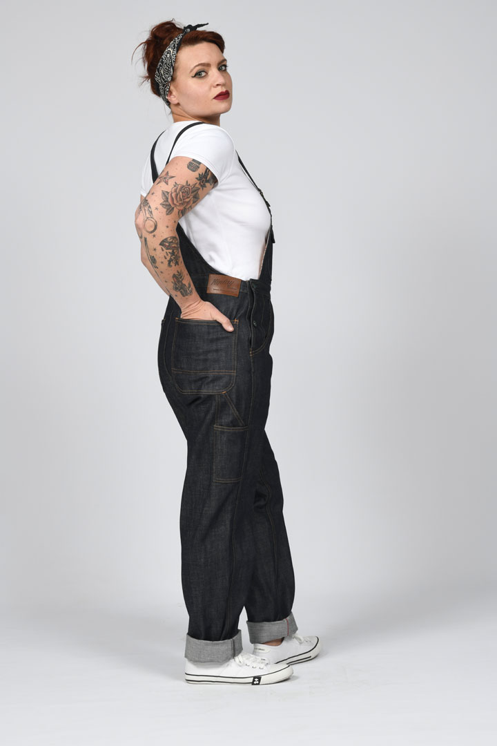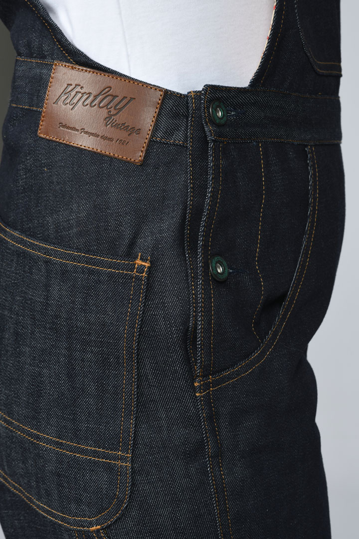 La salopette réinventée façon américaine version rayure.Confectionné en France en :Jeans brut - 100% Coton 271Gr/m².Détails :