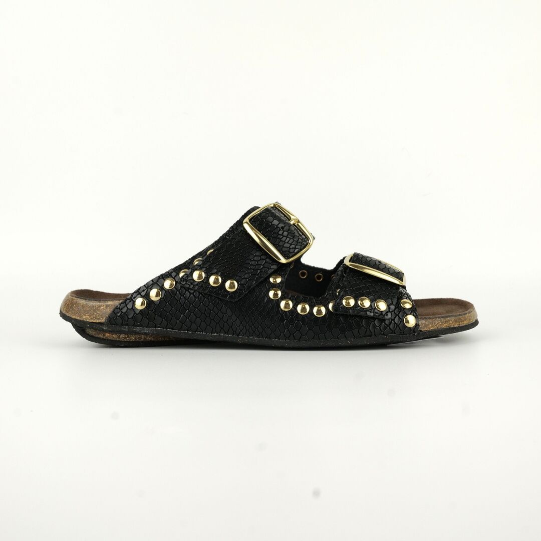 Affirmez votre style avec la sandale Lisa, revisitée dans une version en cuir reptile noir d'une élégance rare. Ce modèle "super classe" est la pièce maîtresse pour celles qui ne veulent pas choisir entre confort et distinction. Que ce soit pour habiller une robe de soirée ou pour apporter une touche chic à un simple jean, la Lisa en version reptile noir transforme instantanément votre allure.