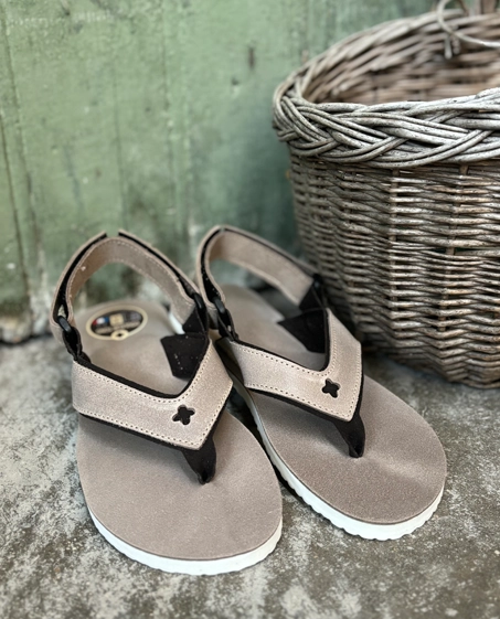 Grâce à sa bride large en cuir ciré Taupe et sa sangle arrière amovible, ce modèle permet un très bon maintien du pied. L'entre-doigt en microfibre est particulièrement confortable.Sandales homme certifiées Origine France Garantie.