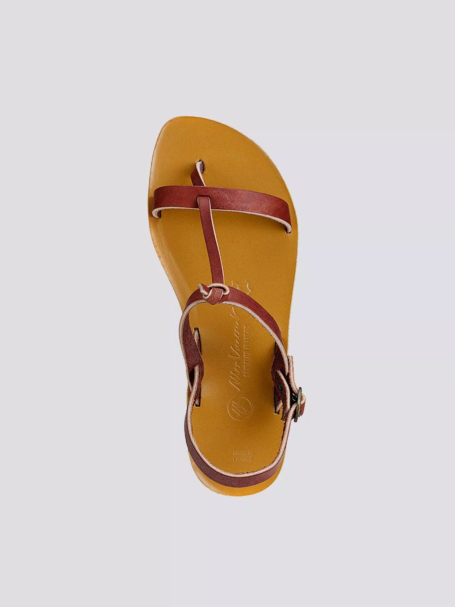 Sandales double bride bandol cuir tannage vegetal bordeaux femme