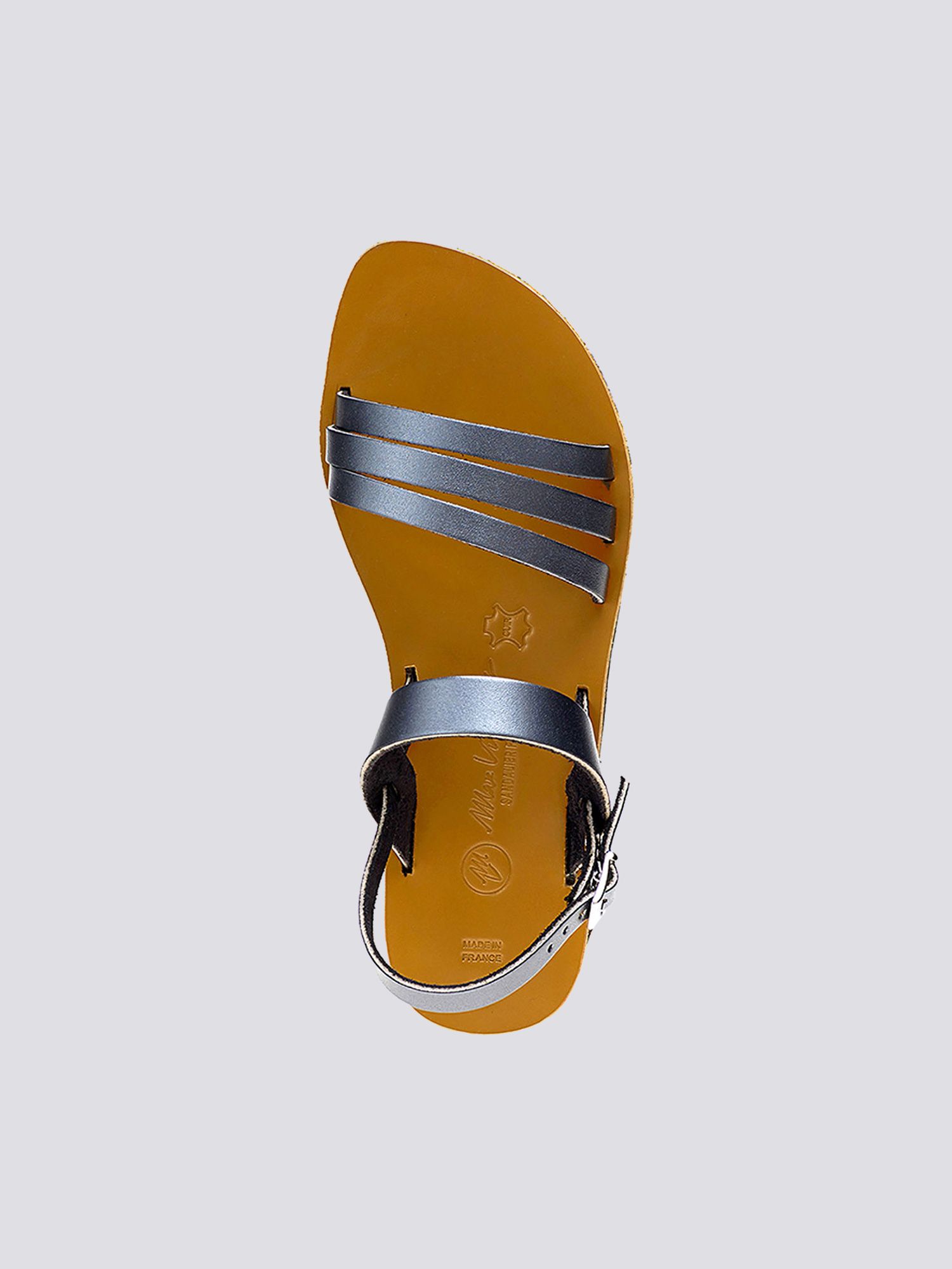 LES SANDALES ÉLÉGANTES À DOUBLE BRIDE Voici la sandale délicate et élégante FLORA. Dans les tons métallisés Bleu Acier, elle vous donnera une allure de femme du futur.