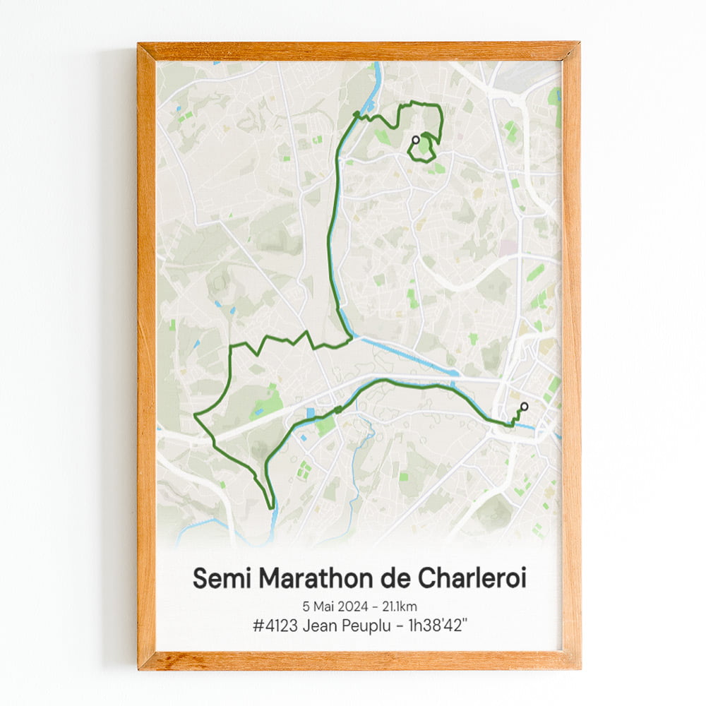 Cette affiche du parcours du Semi Marathon de Charleroi est imprimée sur du papier photo brillant haute qualité.Pour créer un poster personnel et unique, ajoutez votre numéro de dossard, votre nom, prénom, votre temps d'arrivée ou le texte que vous souhaitez.