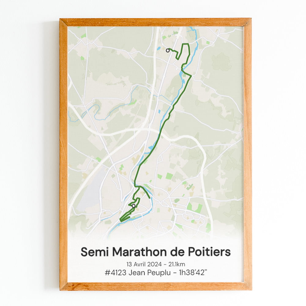 Cette affiche du parcours du Semi Marathon de Poitiers est imprimée sur du papier photo brillant haute qualité.Pour créer un poster personnel et unique, ajoutez votre numéro de dossard, votre nom, prénom, votre temps d'arrivée ou le texte que vous souhaitez.